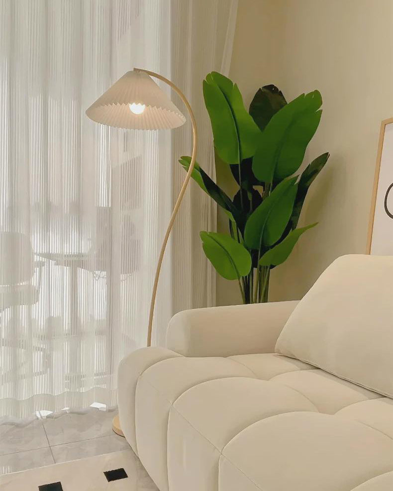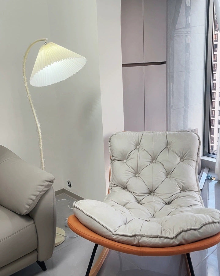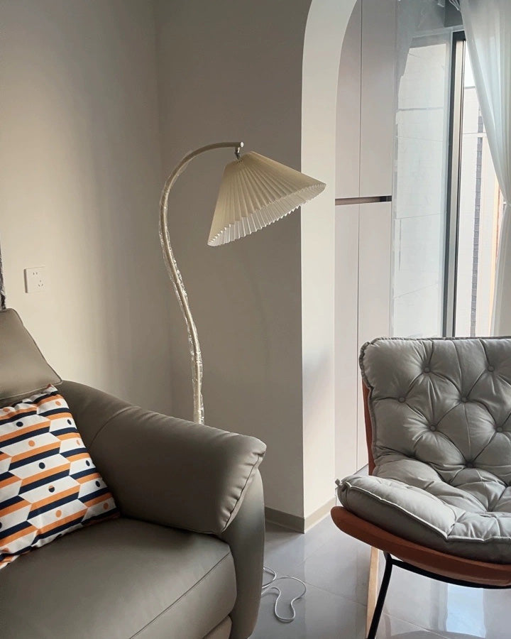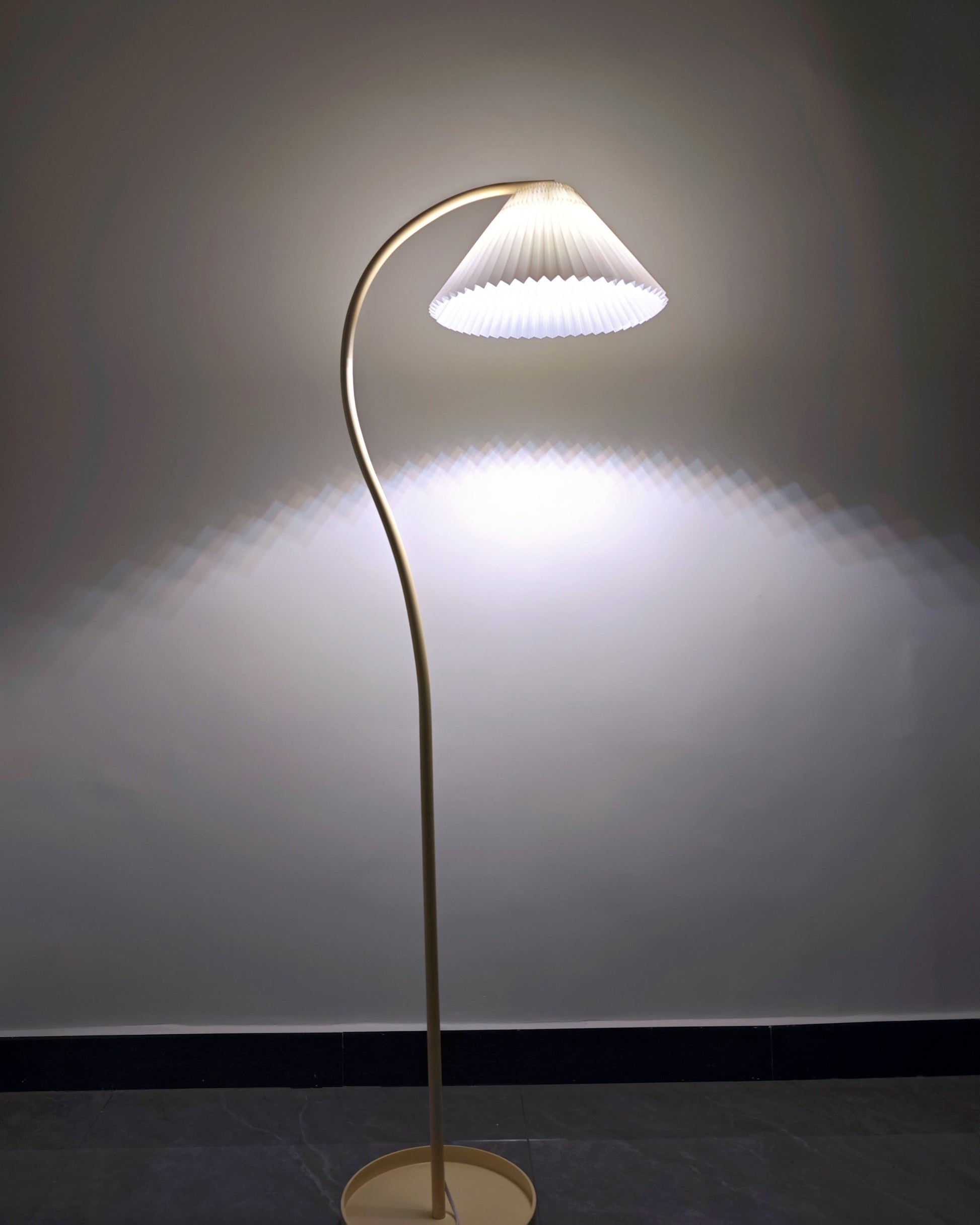 Illuminate your space with our japandi and elegant WOMO Pleated Floor Lamp-WM7119. Made of sturdy metal and finished in a luxurious gold, this lamp adds a touch of sophistication to any living room or bedroom. Its unique gooseneck design allows for versatile placement, making it the perfect addition to your home.