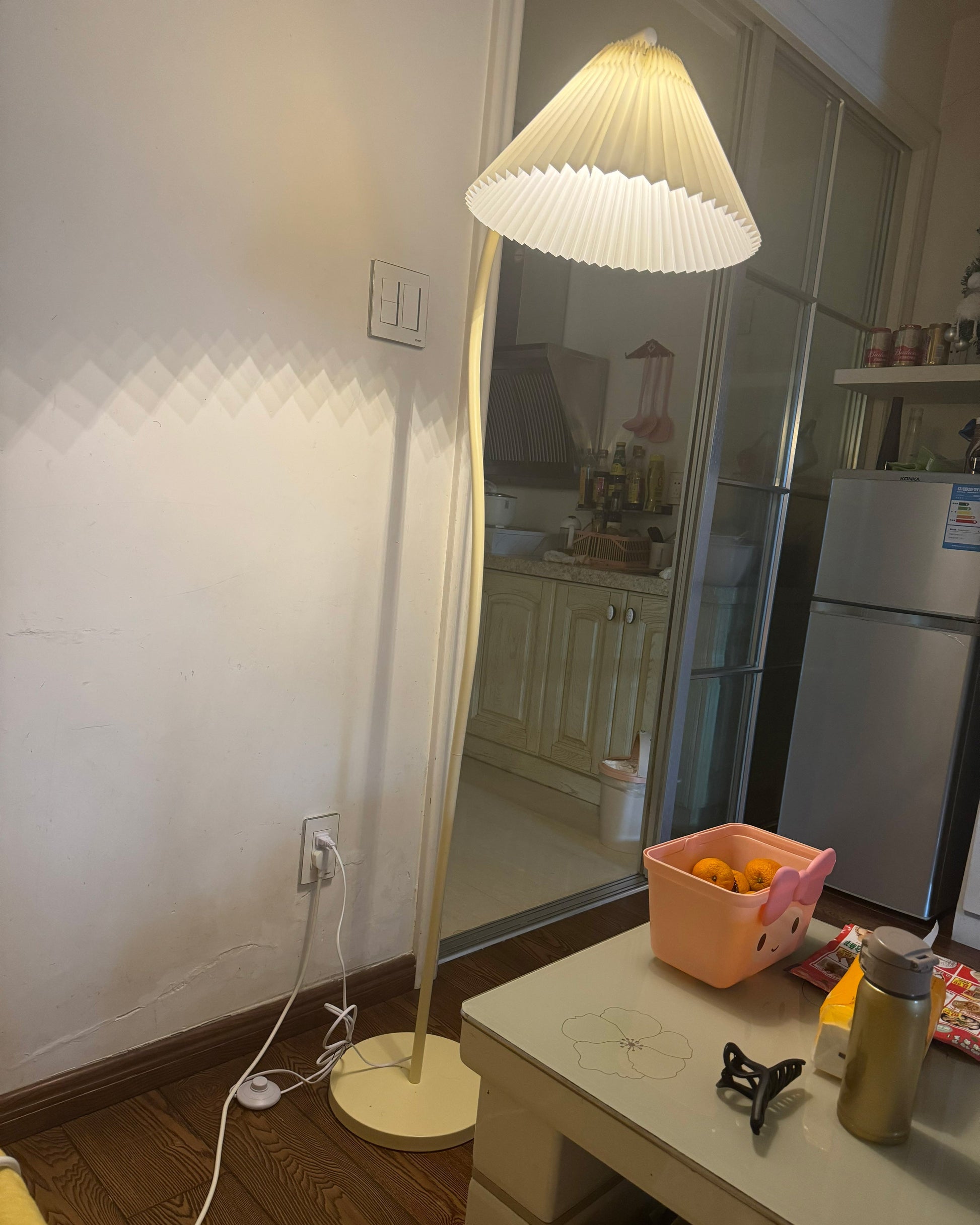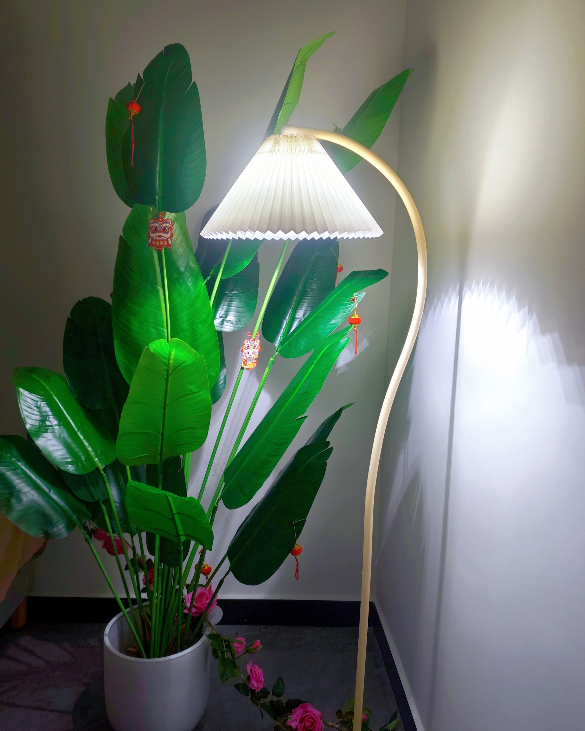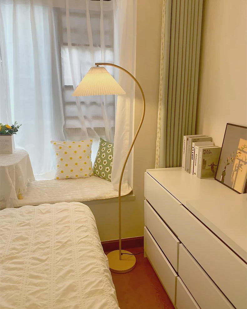 Illuminate your space with our japandi and elegant WOMO Pleated Floor Lamp-WM7119. Made of sturdy metal and finished in a luxurious gold, this lamp adds a touch of sophistication to any living room or bedroom. Its unique gooseneck design allows for versatile placement, making it the perfect addition to your home.