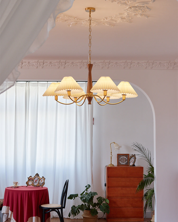 WOMO Pleated Shaded Wood Chandelier-WM2864