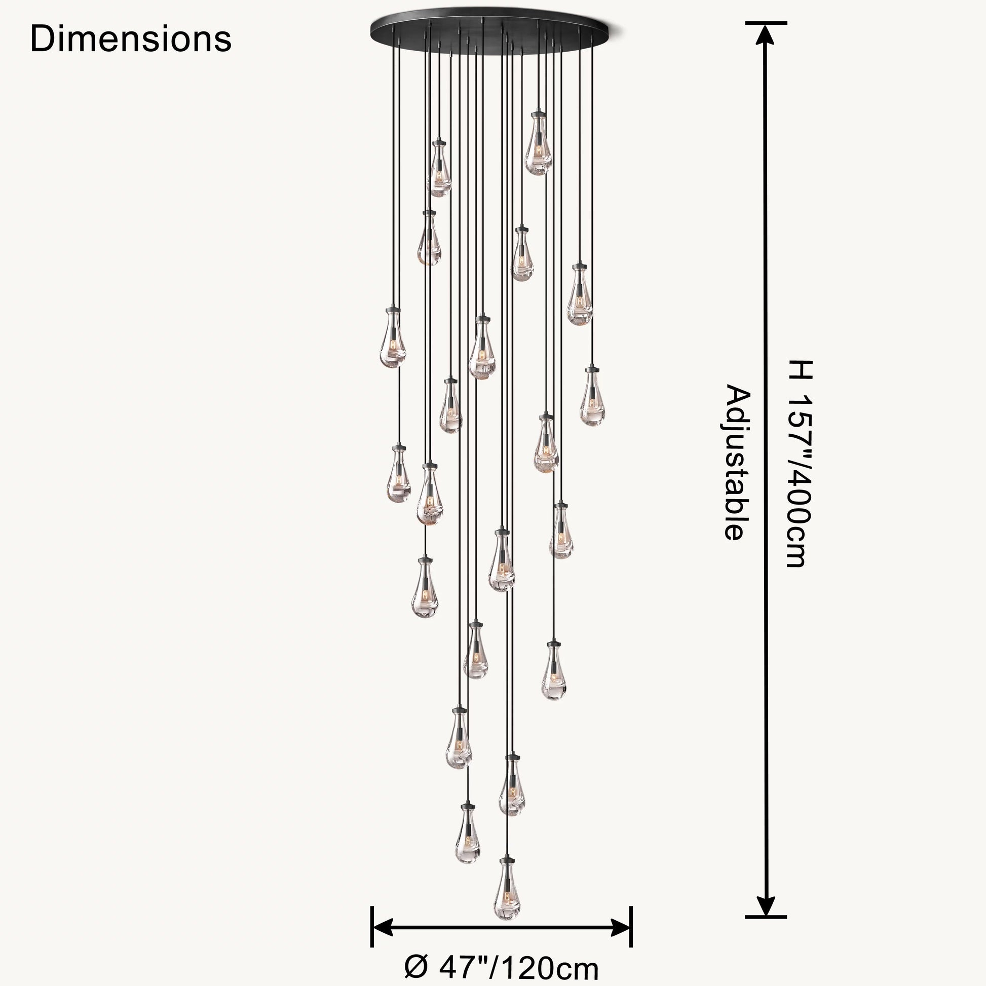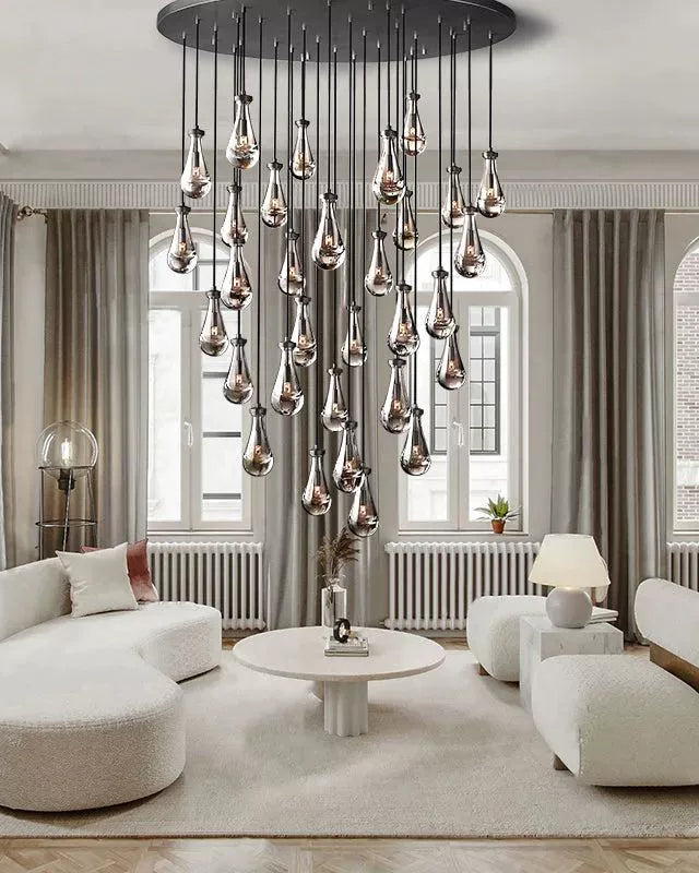 Elevate the elegance of your home with WOMO Cascading Glass Chandelier. Perfect for showcasing in your staircase or living room, this chandelier features a stunning combination of silver, brass or black. Transform any space into a luxurious setting with just one piece.