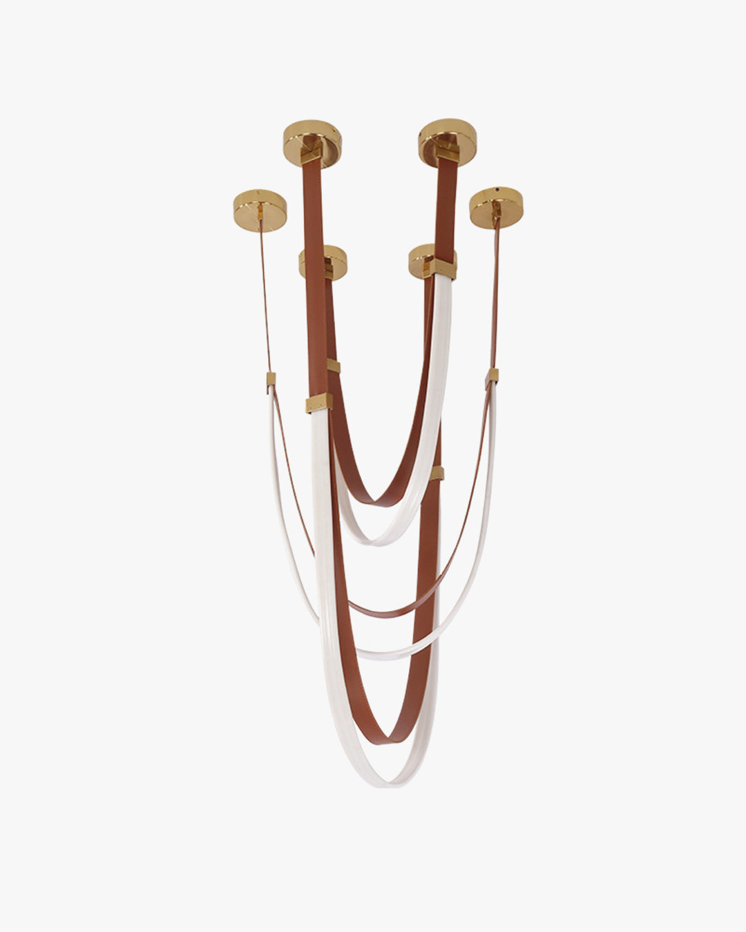 Introducing the WOMO Shalom Leather Chandelier-WM2908, a contemporary chandelier with a luxurious leather design and coffee finish. Elevate your living or dining room with this elegant piece, creating a warm and inviting atmosphere. Shalom, indeed!