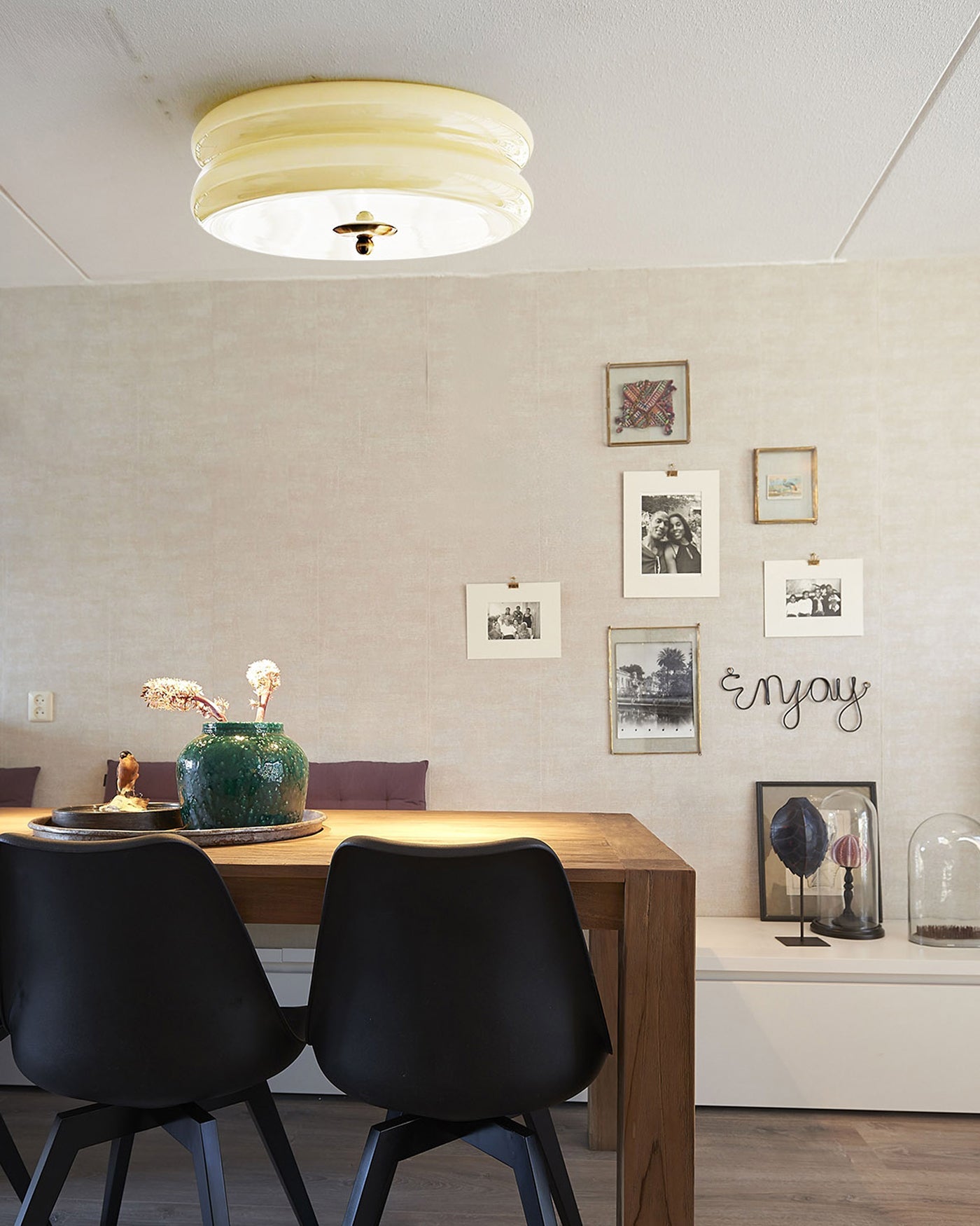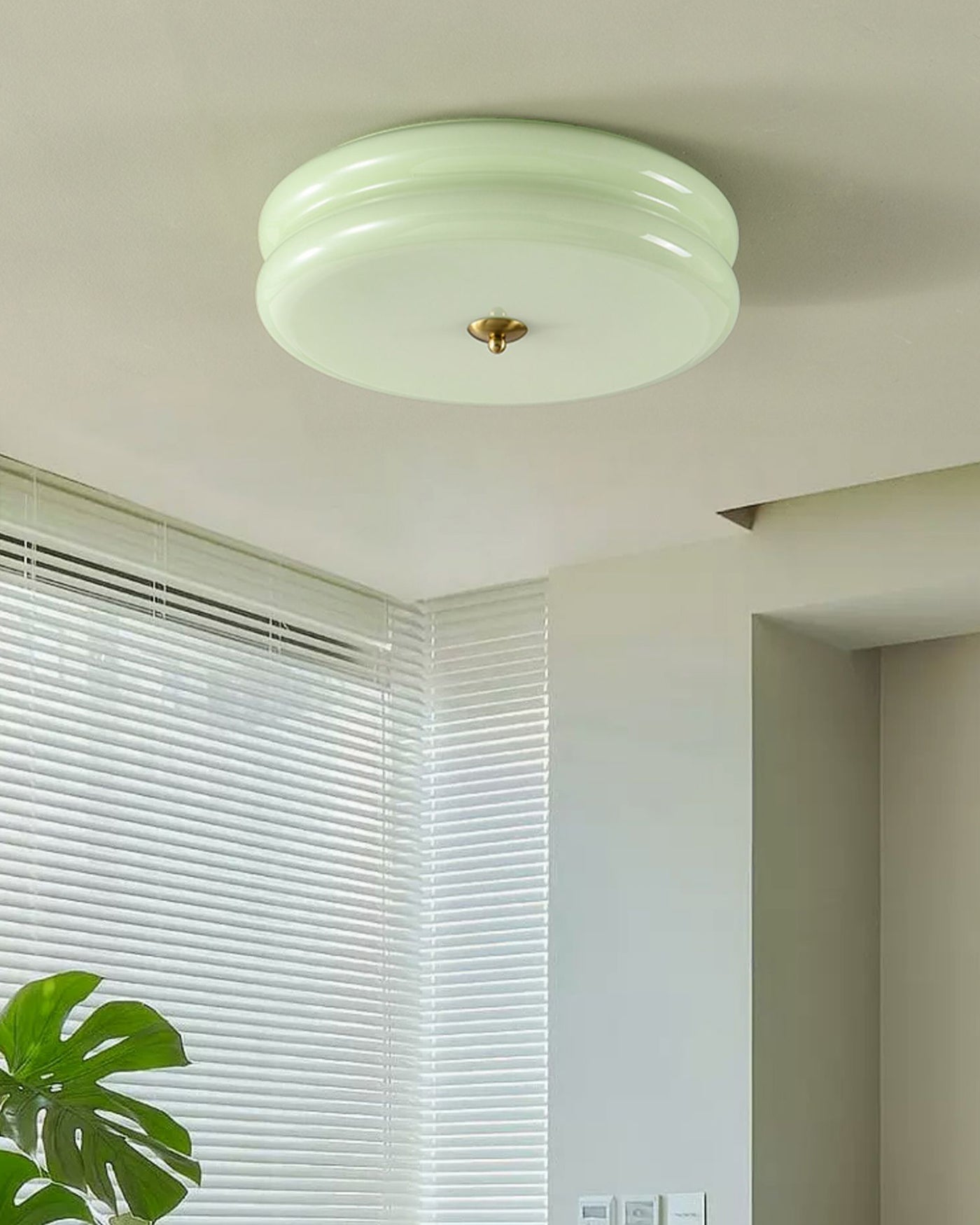 Elevate your space with the stunning WOMO Round Glass Ceiling Light-WM1132. Featuring a chic Art Deco design in classic white, beige, and green hues, this light brings a touch of sophistication to any bedroom. The glass construction adds a touch of elegance while providing a warm, inviting glow.