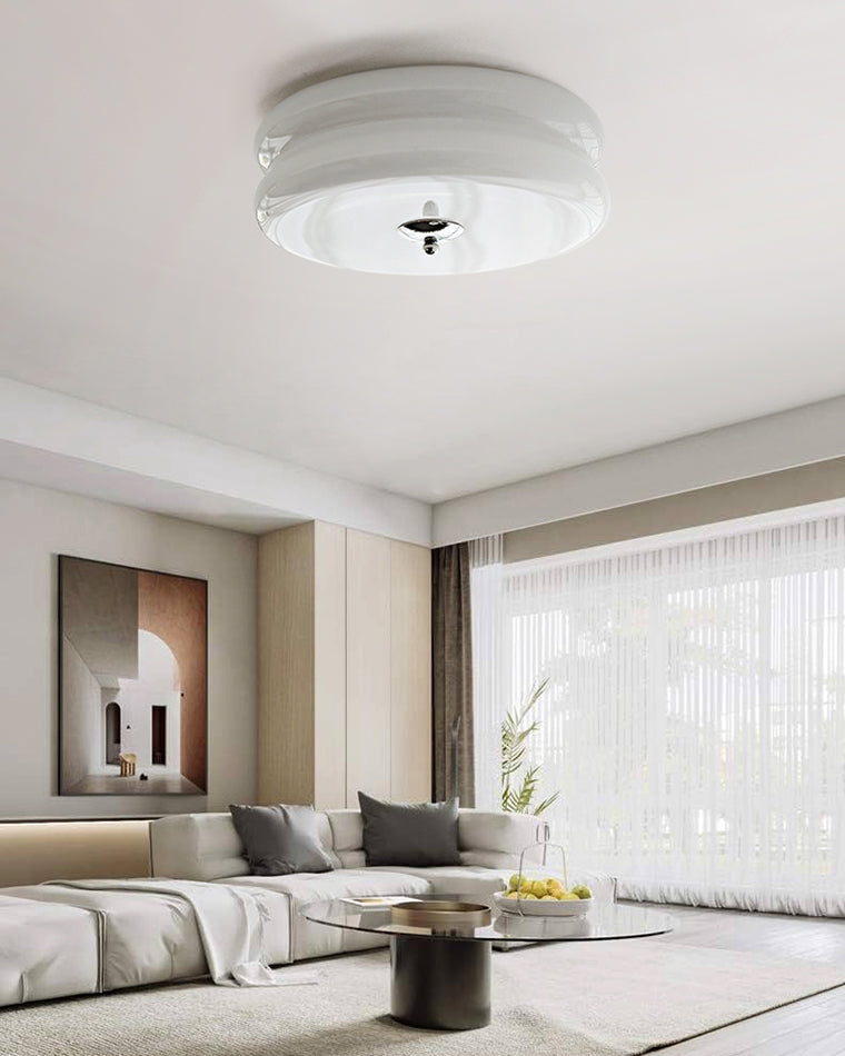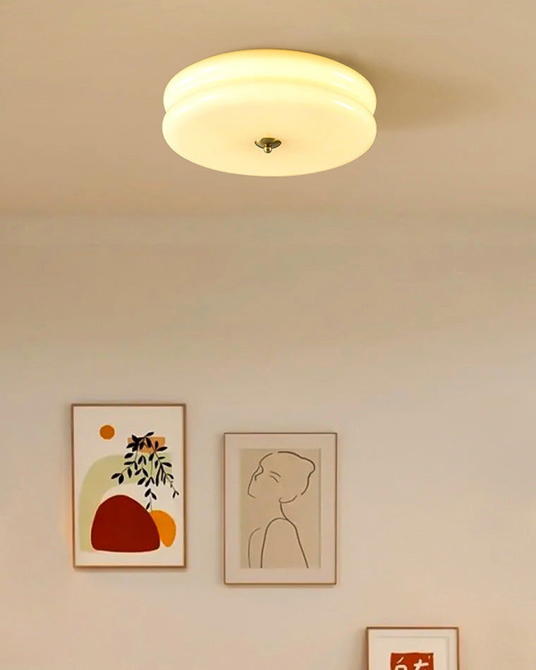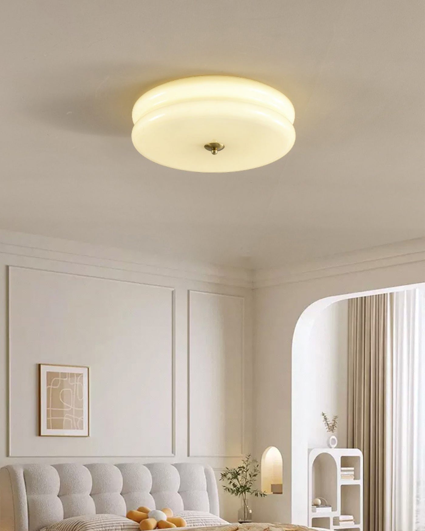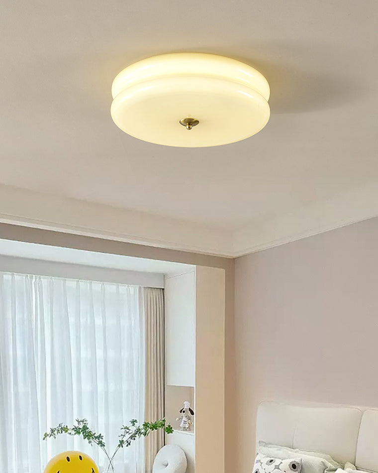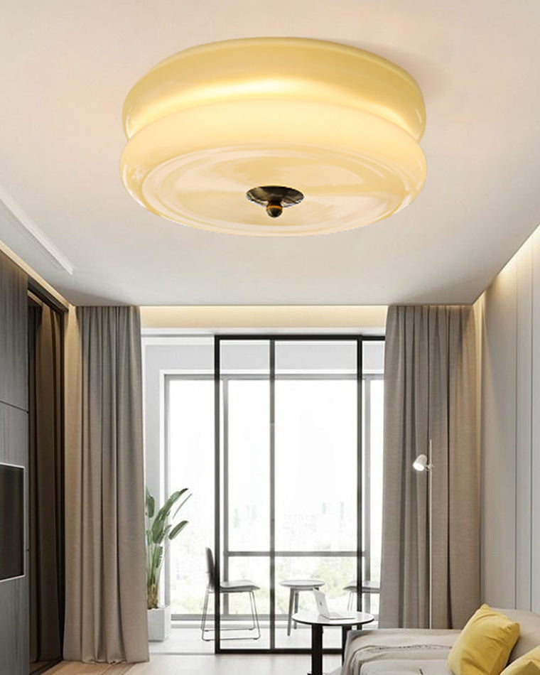 WOMO Round Cream Glass Flush Mount Ceiling Light-WM1132
