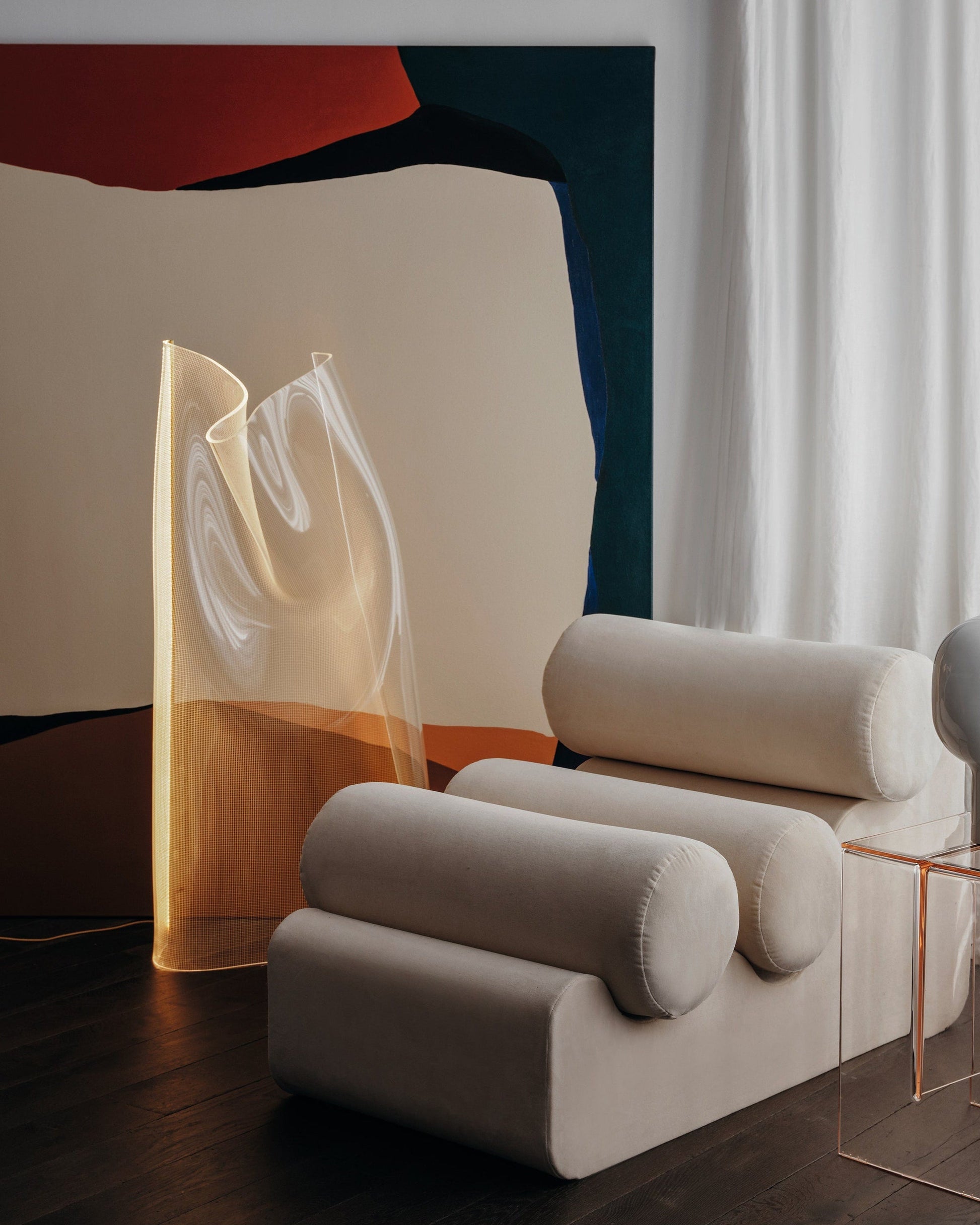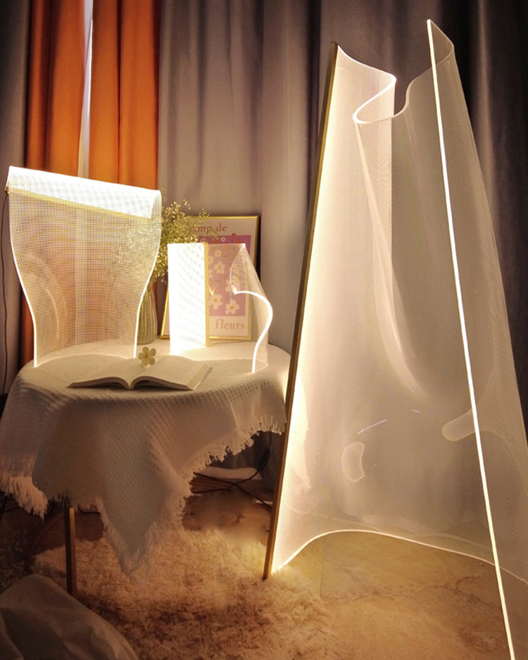 Elevate your living space with the WOMO Wind Sculptural Floor Lamp-WM7100. The airy and modern design, featuring acrylic and gold accents, brings a touch of elegance to any room. Perfect for adding a warm and inviting ambiance to your bedroom.