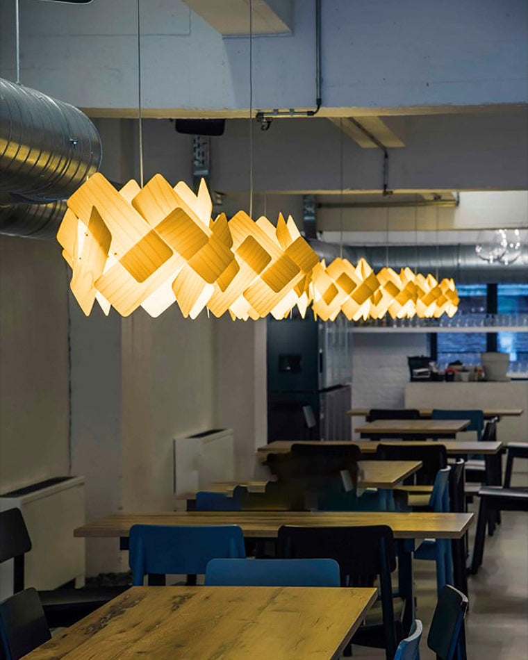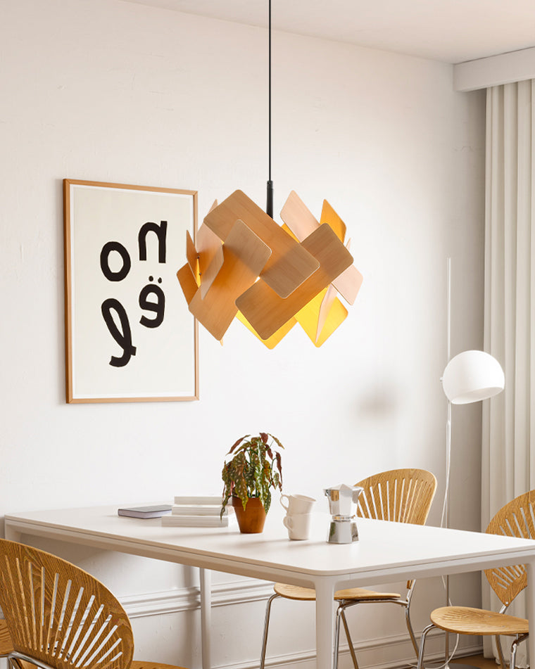Illuminate your space with the stunning WOMO Sculptural Pendant Light-WM2326. Crafted with a mix of wood and acrylic, this light fixture adds a touch of sophistication to any room. Its blue and white tones make it perfect for kitchens or bedrooms, creating a warm and inviting atmosphere. Upgrade your home decor with this functional and stylish pendant light!