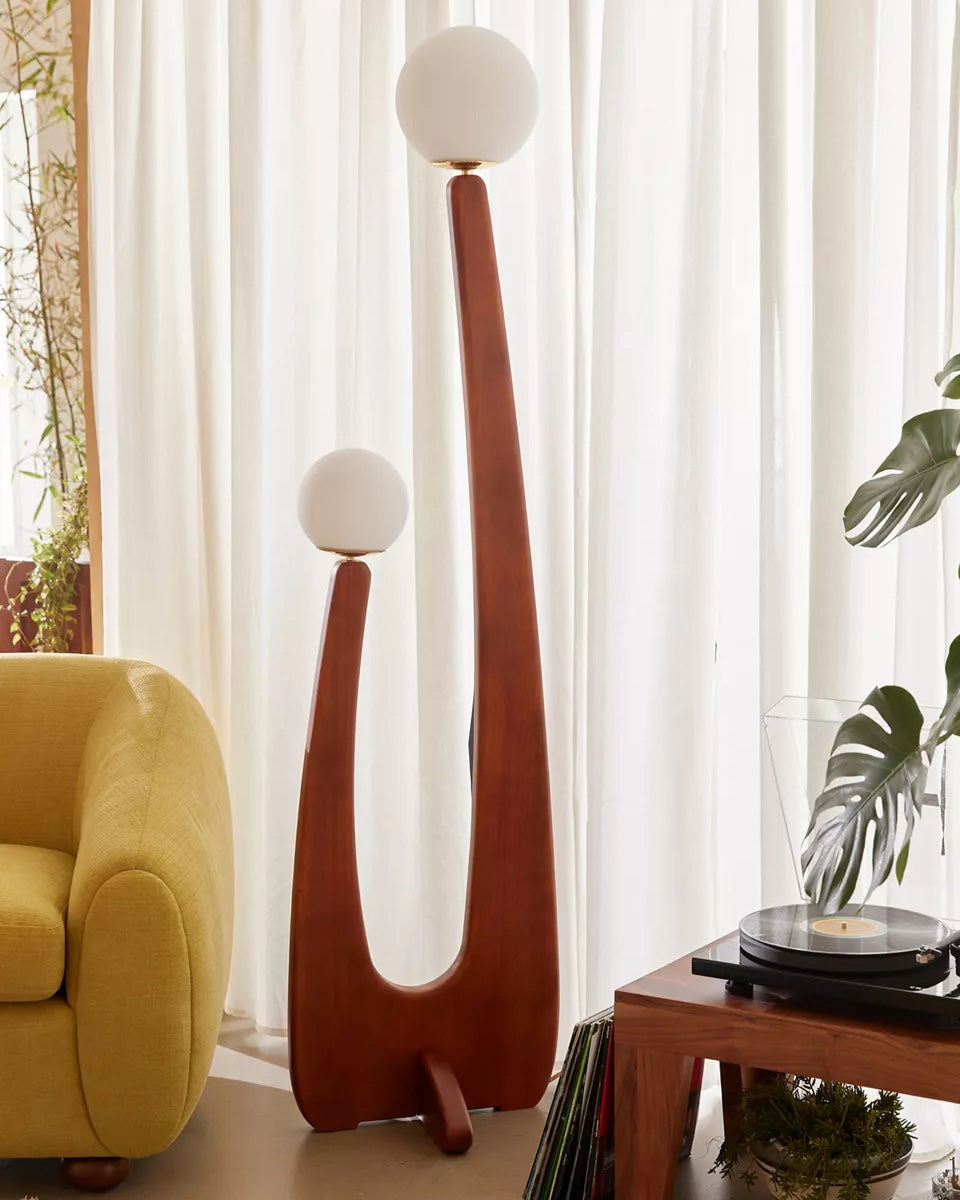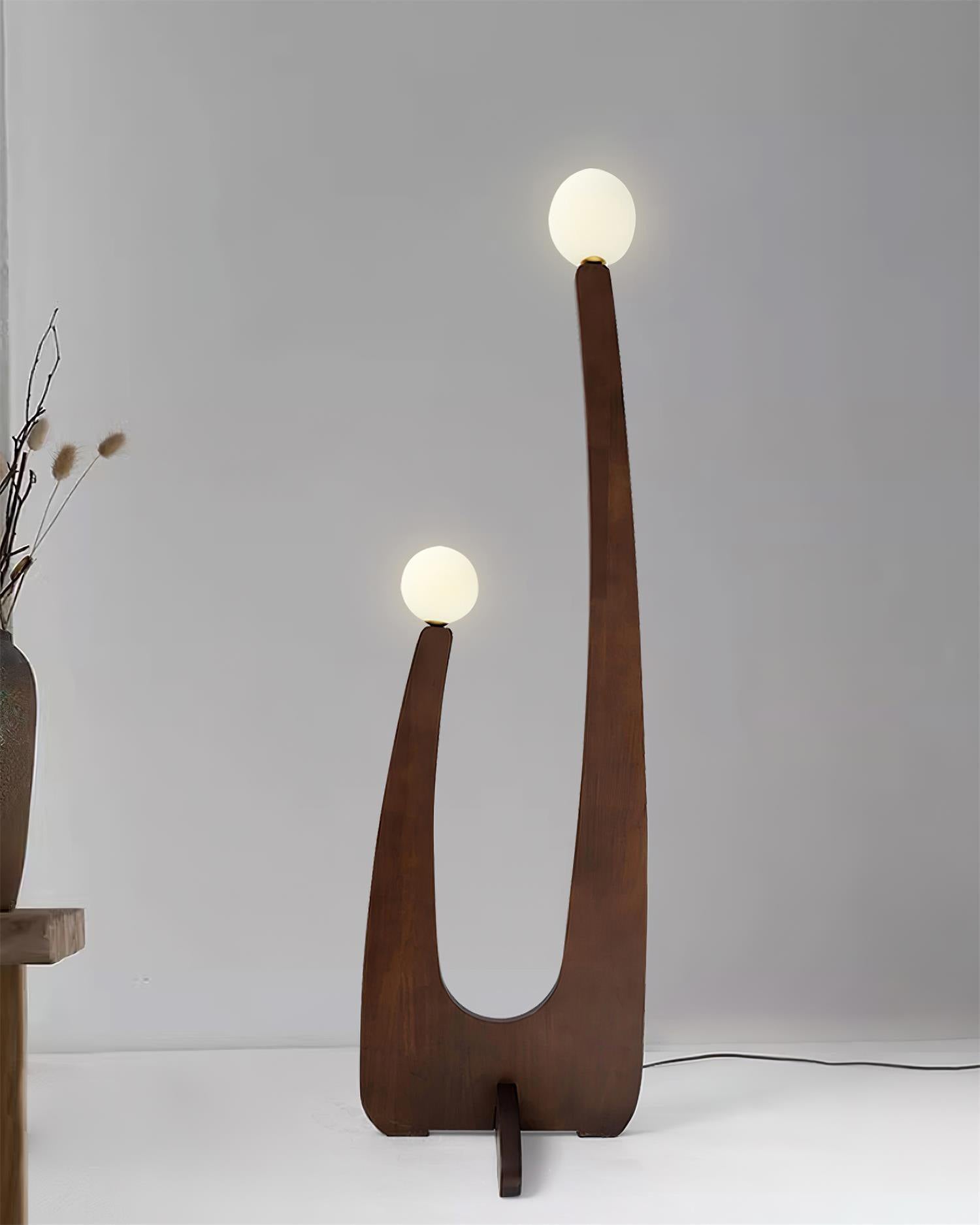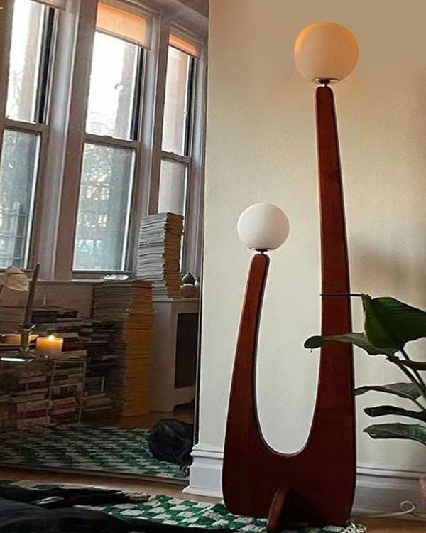 WOMO Globe Wood Sculptural Floor Lamp-WM7131