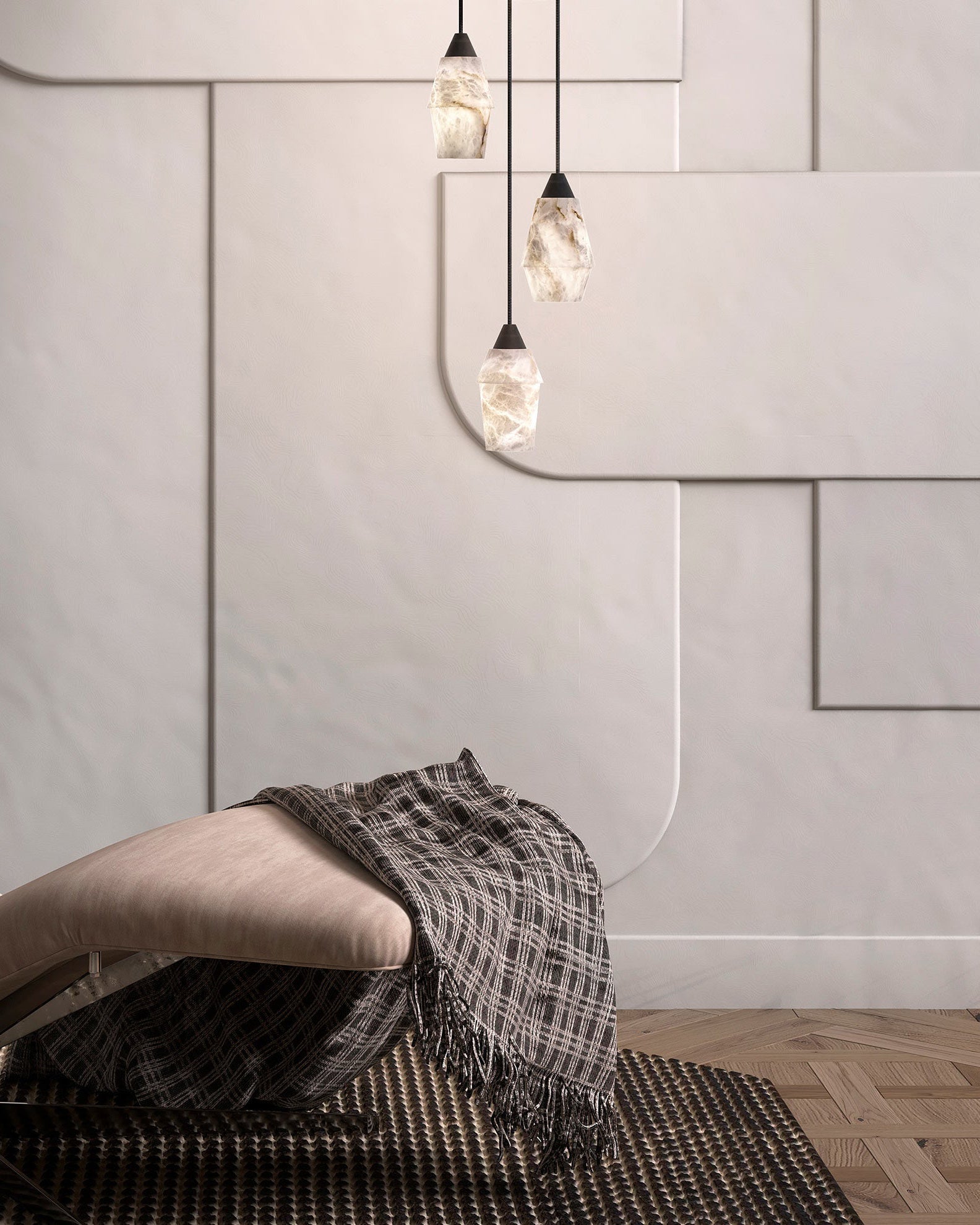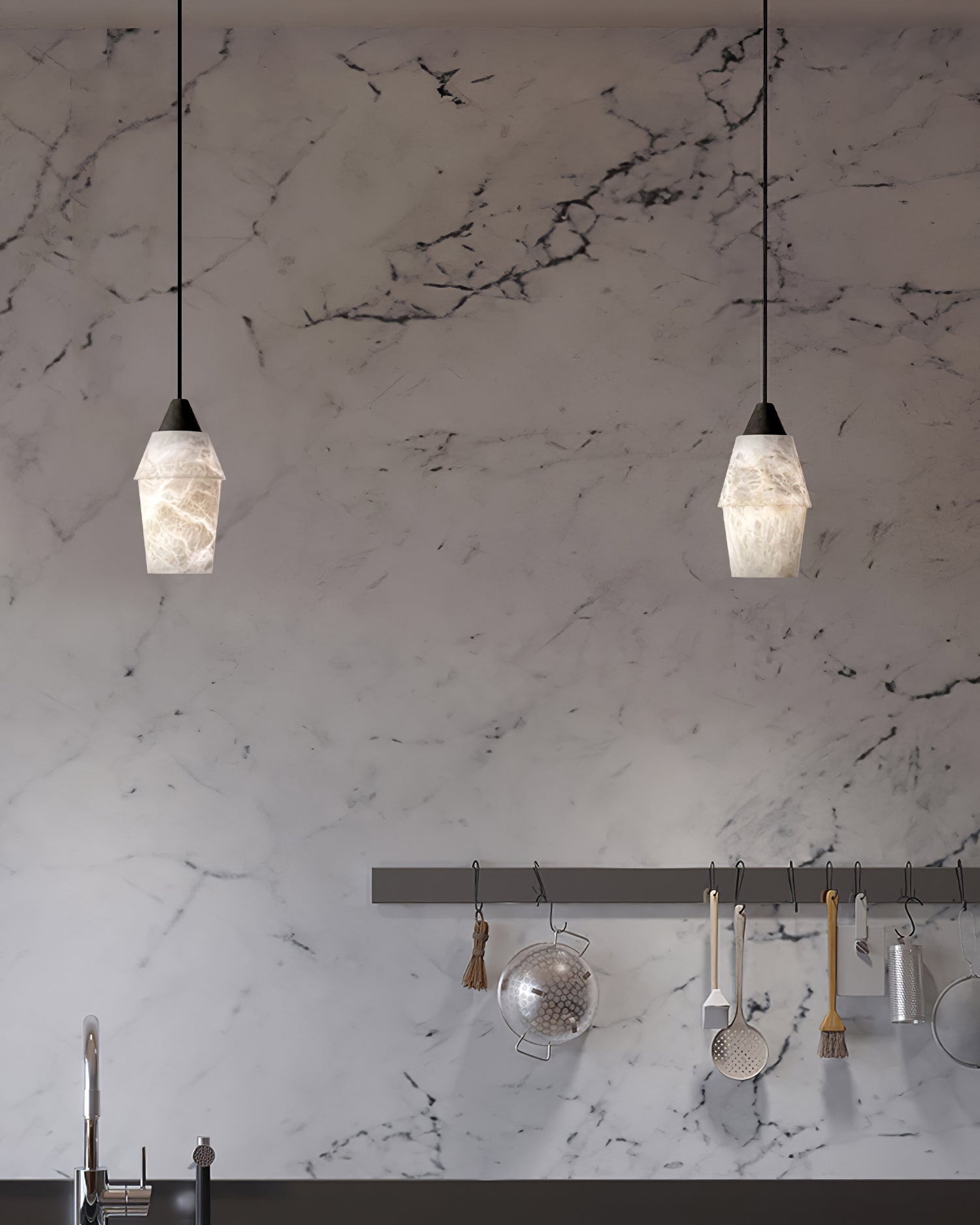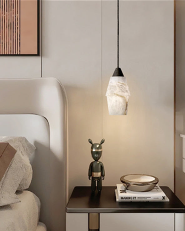 Add a touch of modern elegance to your home with the WOMO Nature Alabaster Pendant Light. The contemporary design featuring alabaster and black accents is perfect for any bedroom or dining room. Illuminate your space with this stylish and sophisticated pendant light.