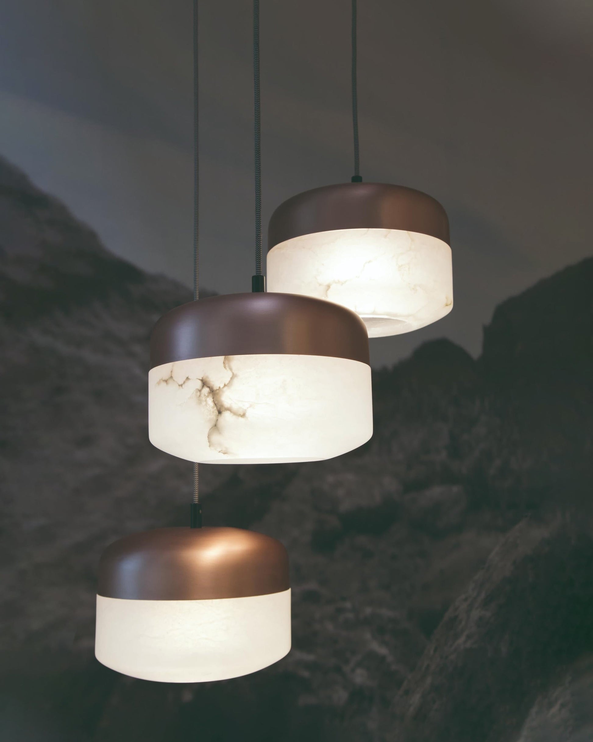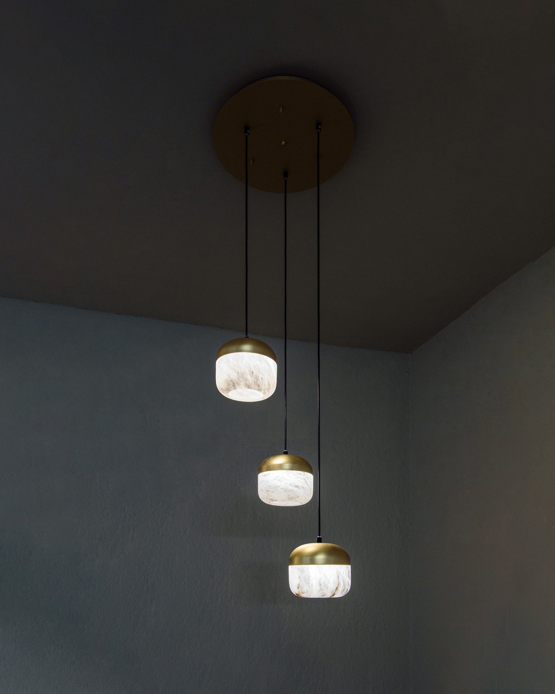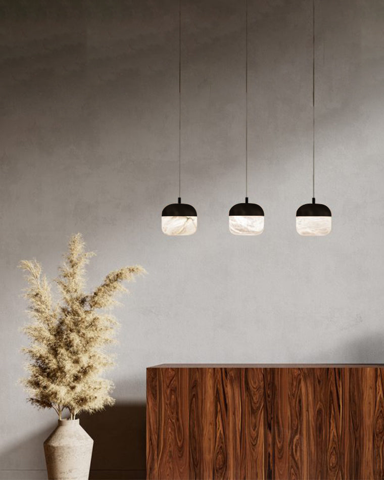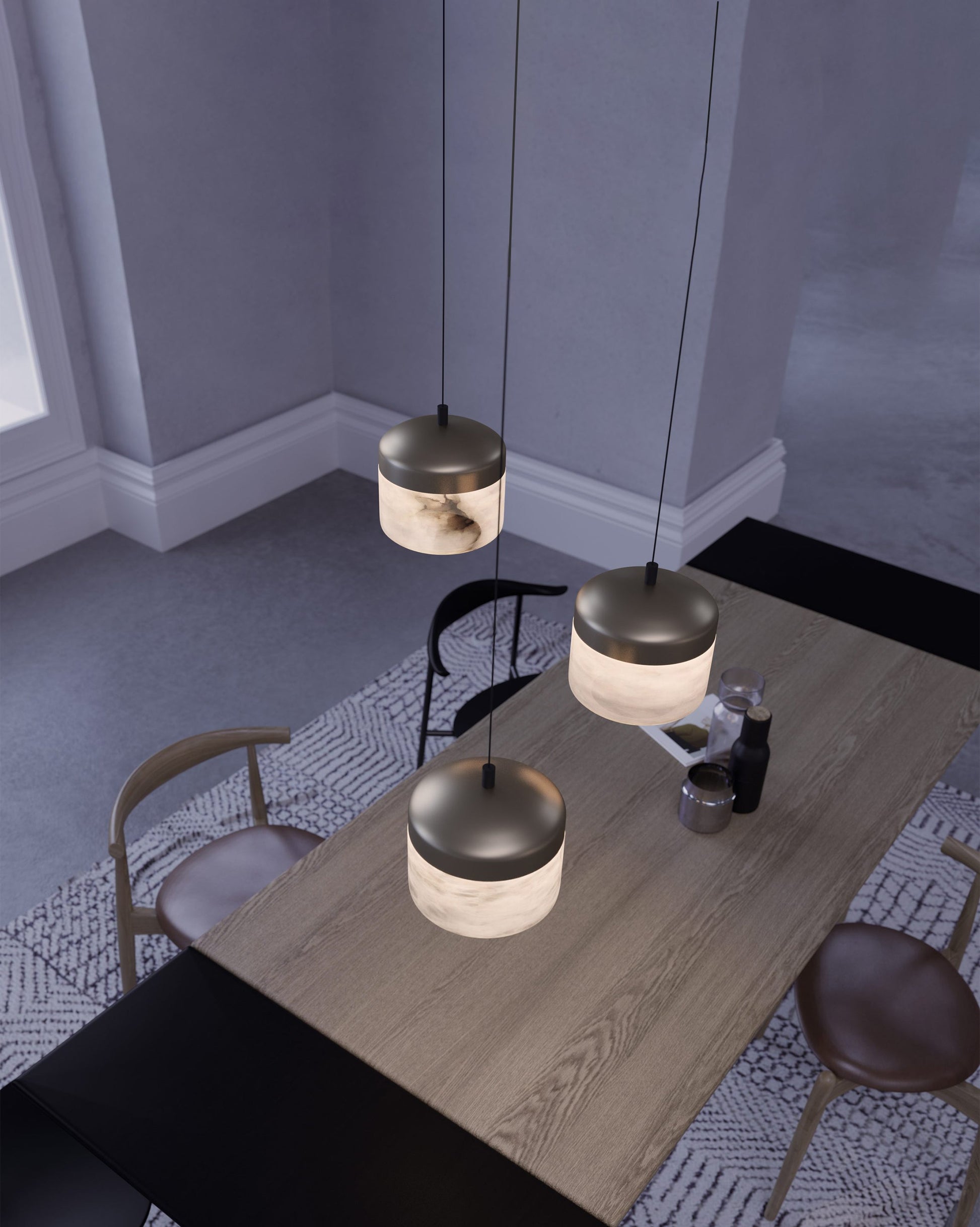 Elevate your space with the contemporary style of our WOMO Small Alabaster Pendant Light. Made of beautiful alabaster and accented with black, this light is perfect for any kitchen or modern home. Create a warm and inviting atmosphere while adding a touch of sophistication to your decor.