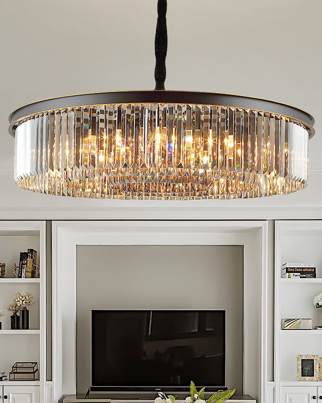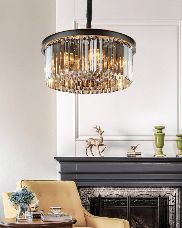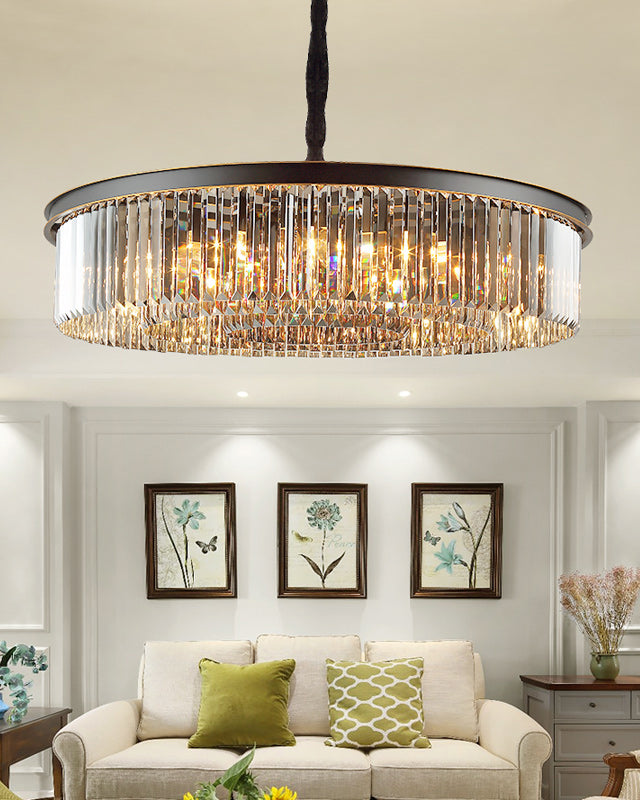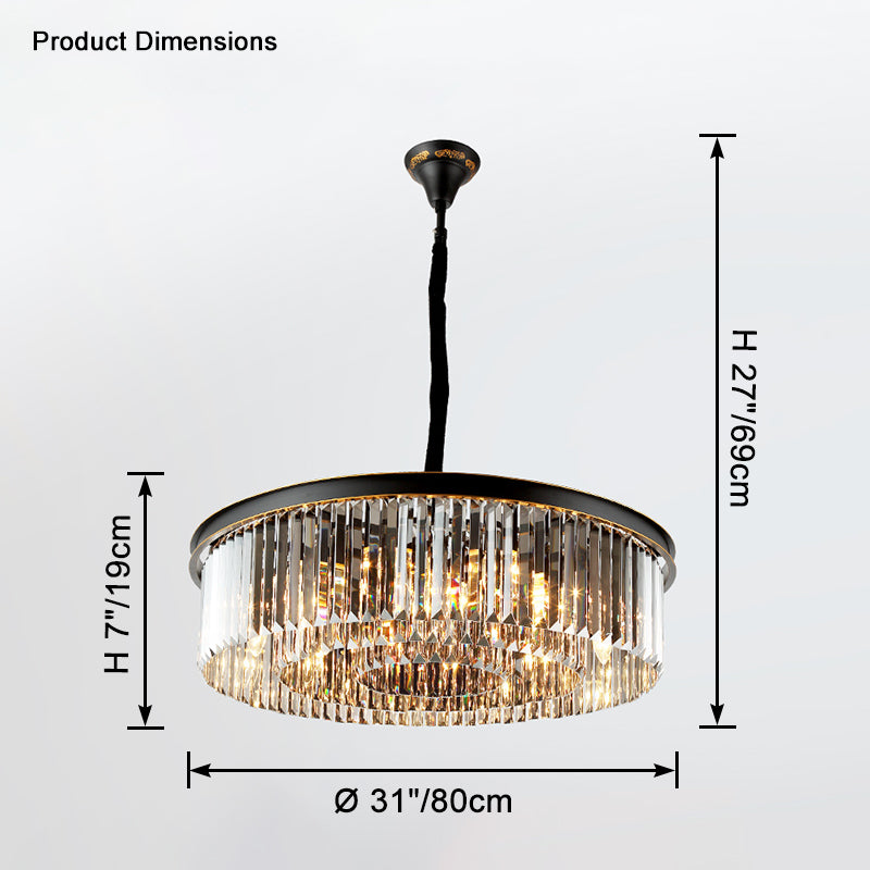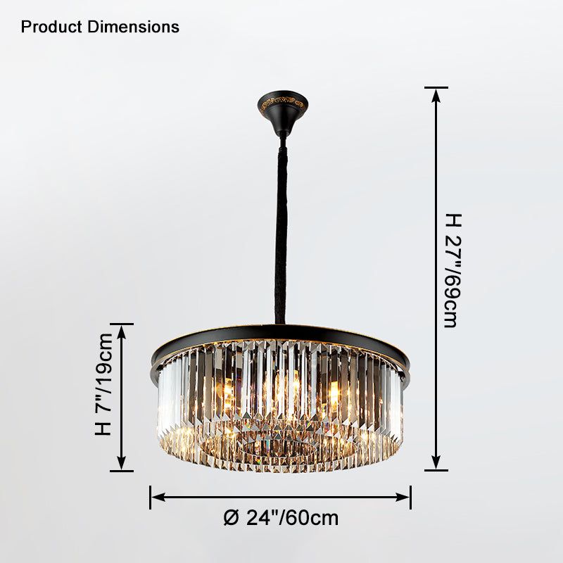 Elevate your living room with the breathtaking WOMO Smoked Round Crystal Chandelier. Add Art Deco charm with the striking smoked crystal design. Perfect for creating a luxurious atmosphere, this round chandelier is a statement piece that will add a touch of elegance to any room.