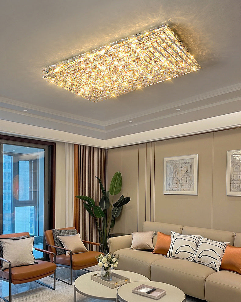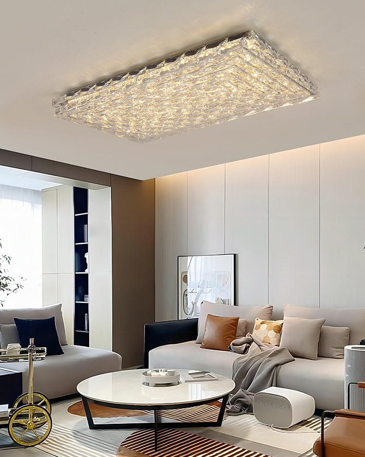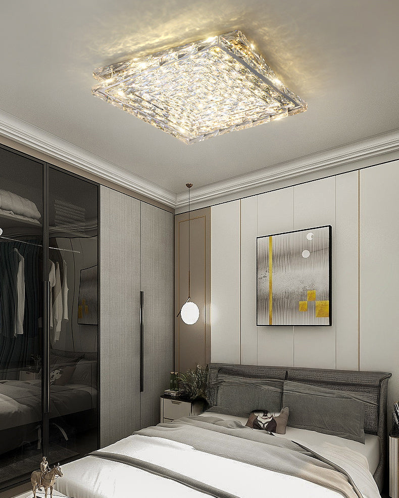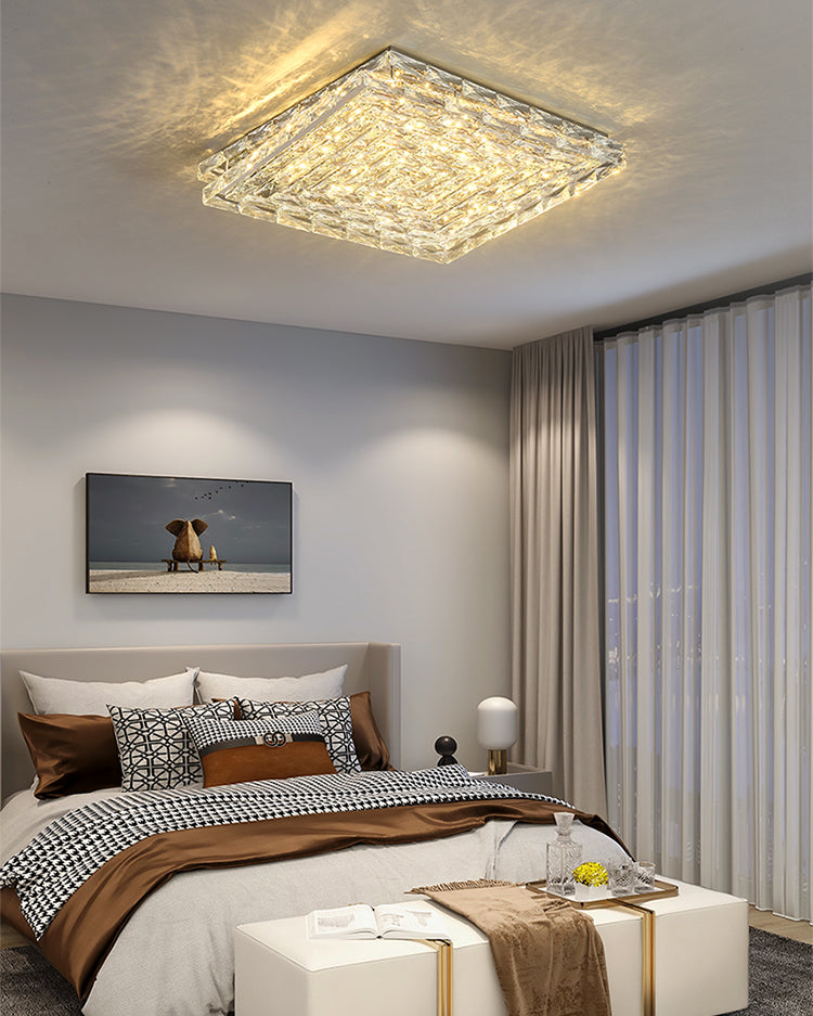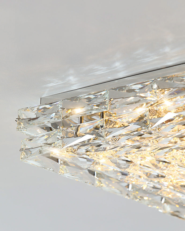 Transform your space with our mesmerizing WOMO Square Crystal Ceiling Light. Enhance your contemporary bedroom or living room with the luxurious glow of sparkling crystals in a sleek chrome square design. Elevate your home decor and create a sense of elegance and sophistication.