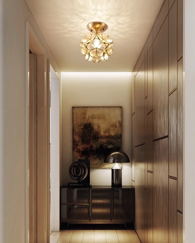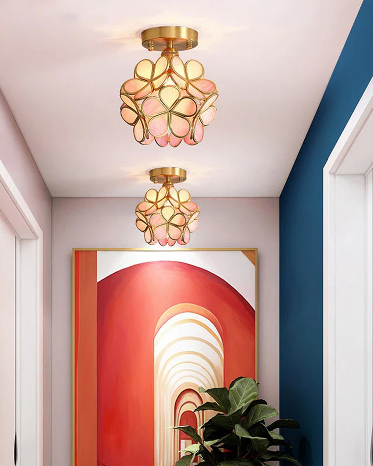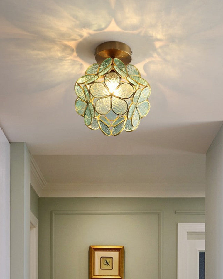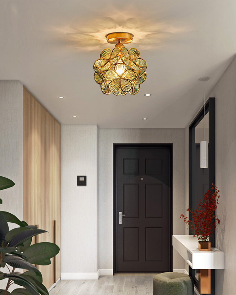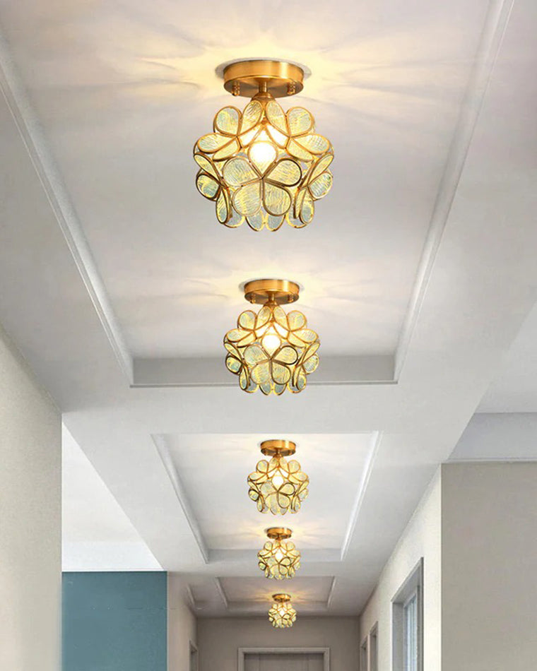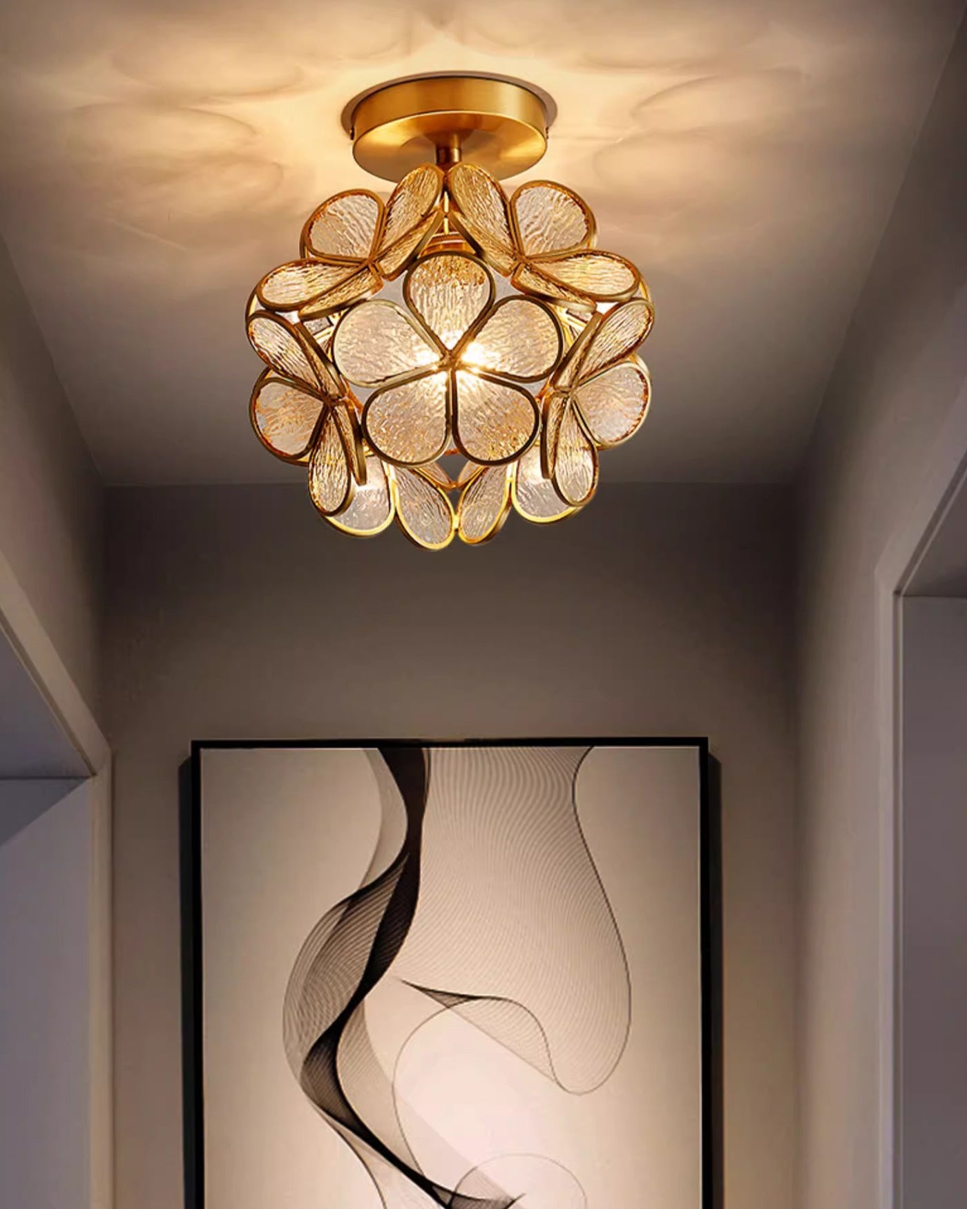 Transform your space with the stunning floral design of the WOMO Stainless Glass Ceiling Light-WM1128. Featuring delicate flowers in shades of gold, pink, blue, or white, this light brings a touch of elegance to any room. Its glass and clear accents add an enchanting sparkle, making it perfect for hallways, bedrooms, and modern kitchens.