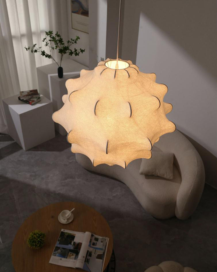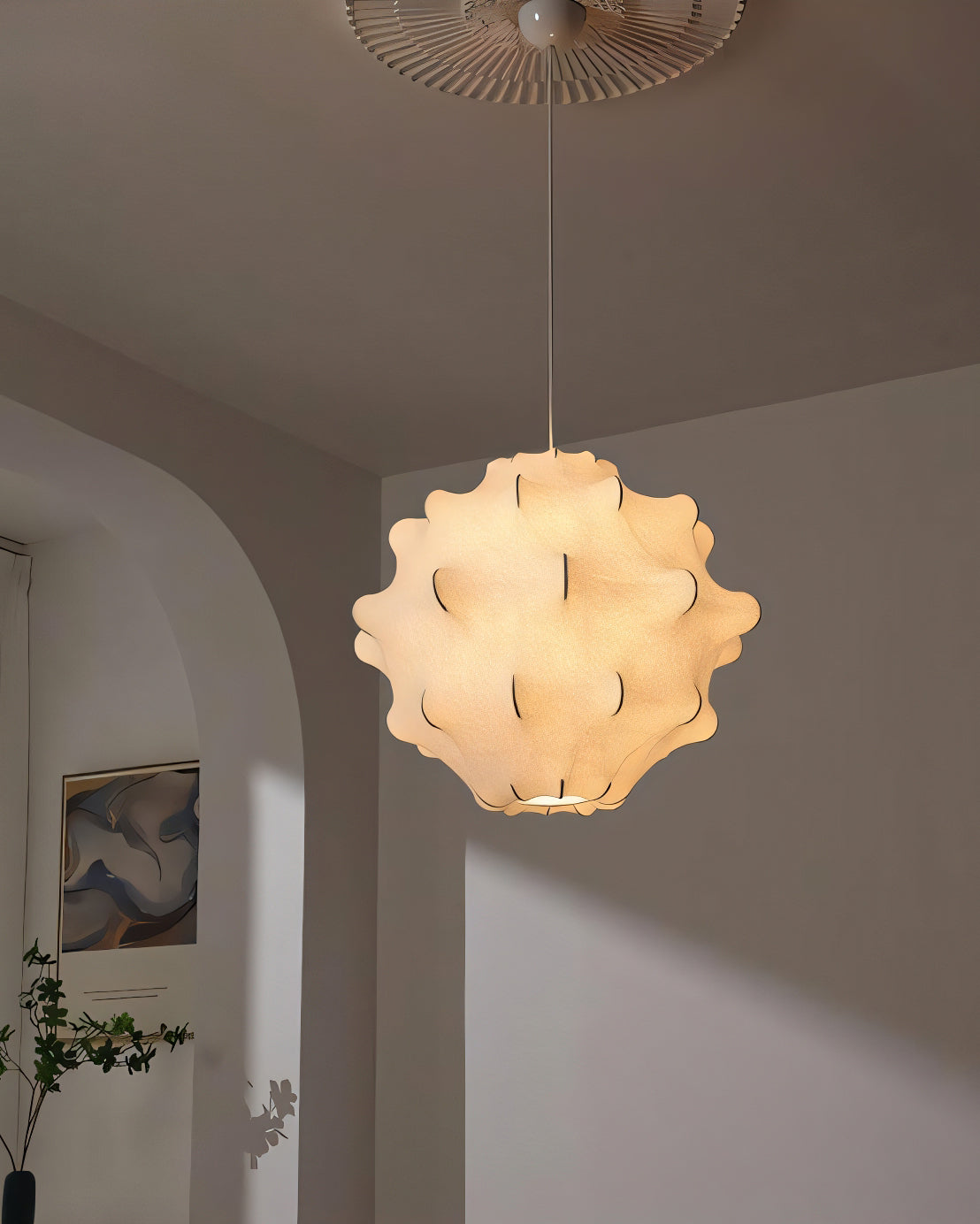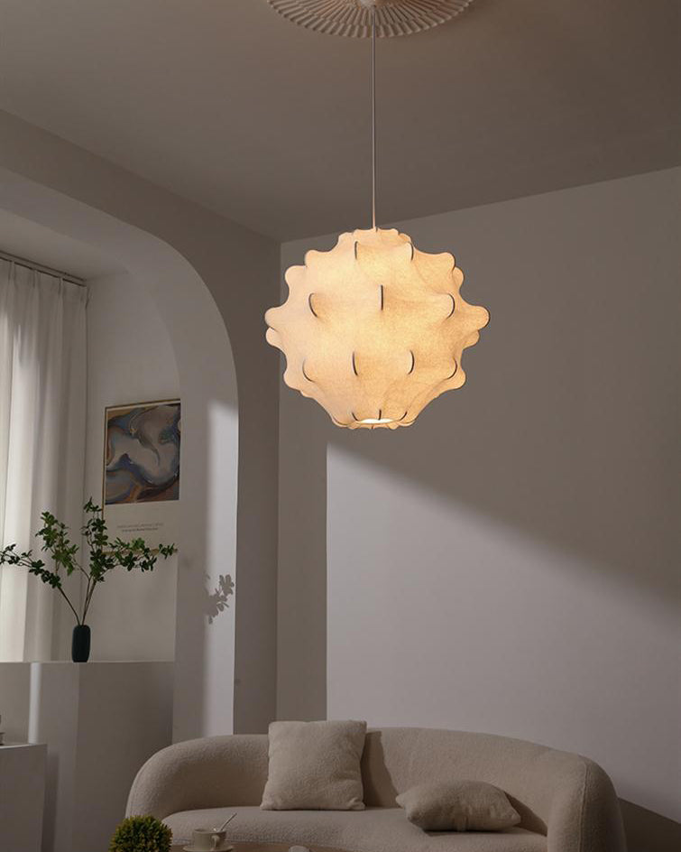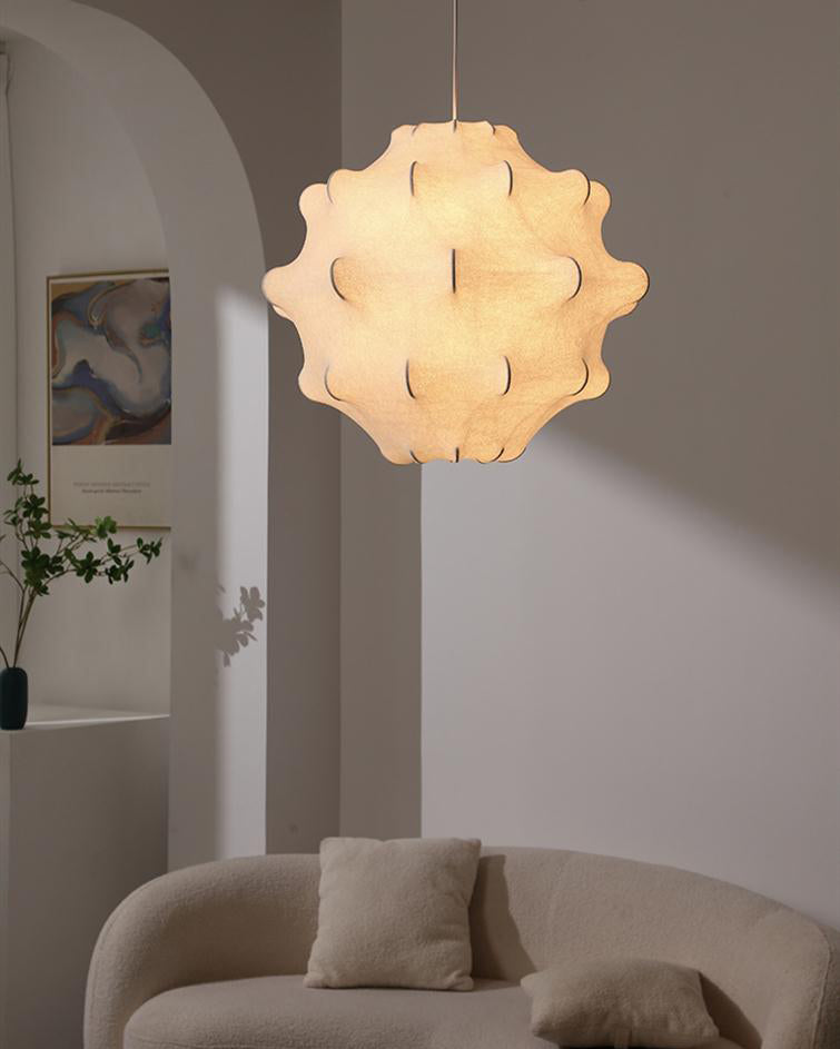 Brighten your space with the elegant WOMO Dandelion Silk Pendant Light. The Japandi-inspired design, made with luxurious silk, adds a touch of sophistication to any dining, kitchen, or living room. Create a warm and inviting ambiance with this stunning pendant light.