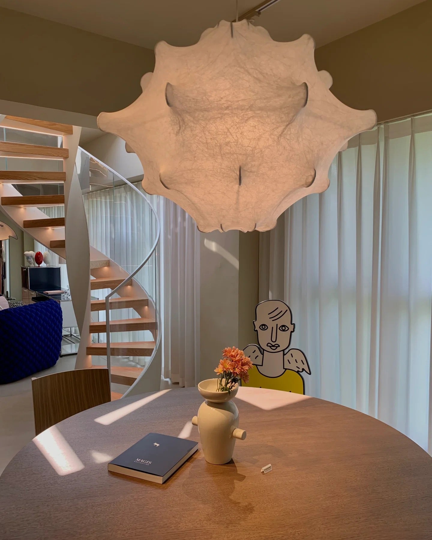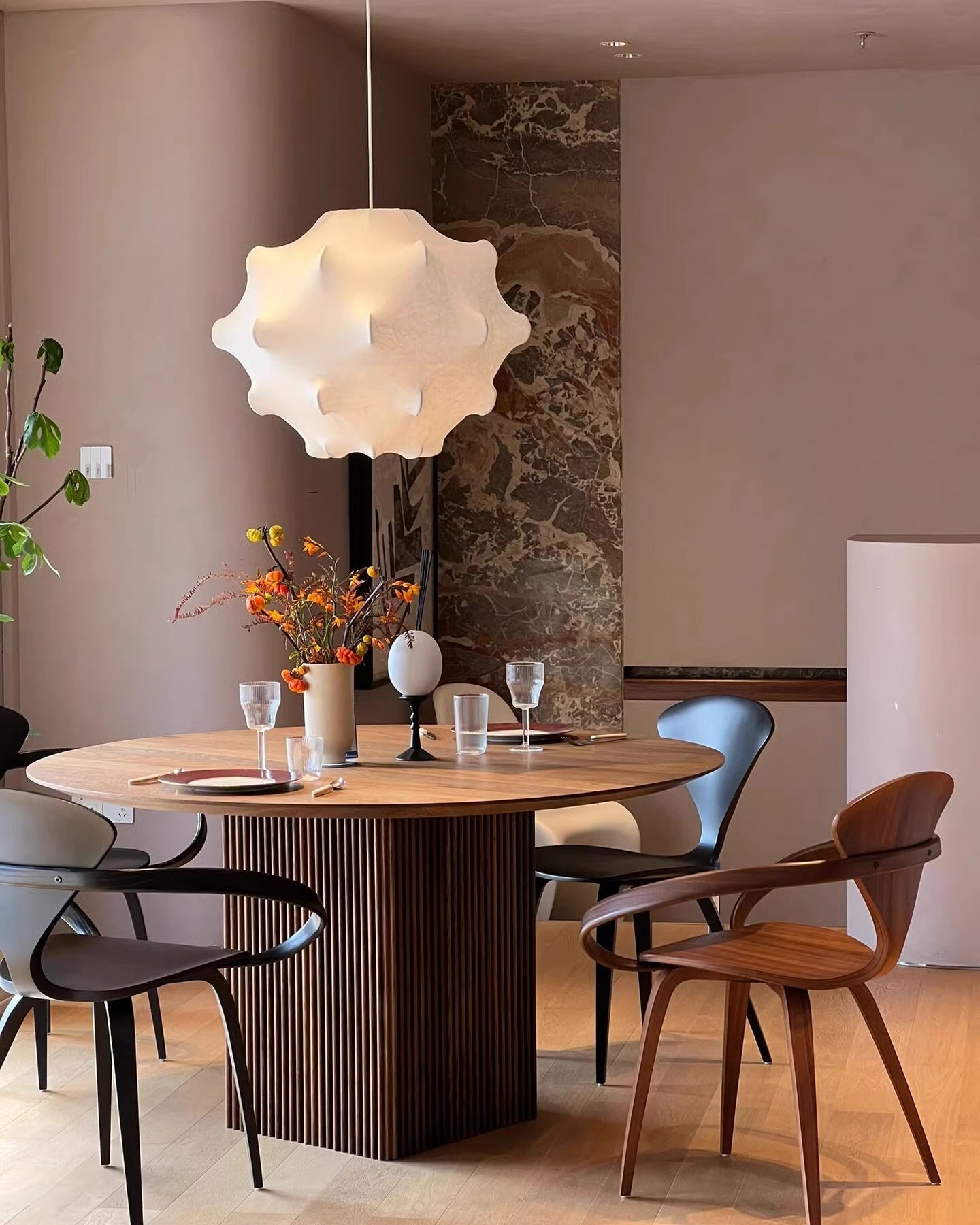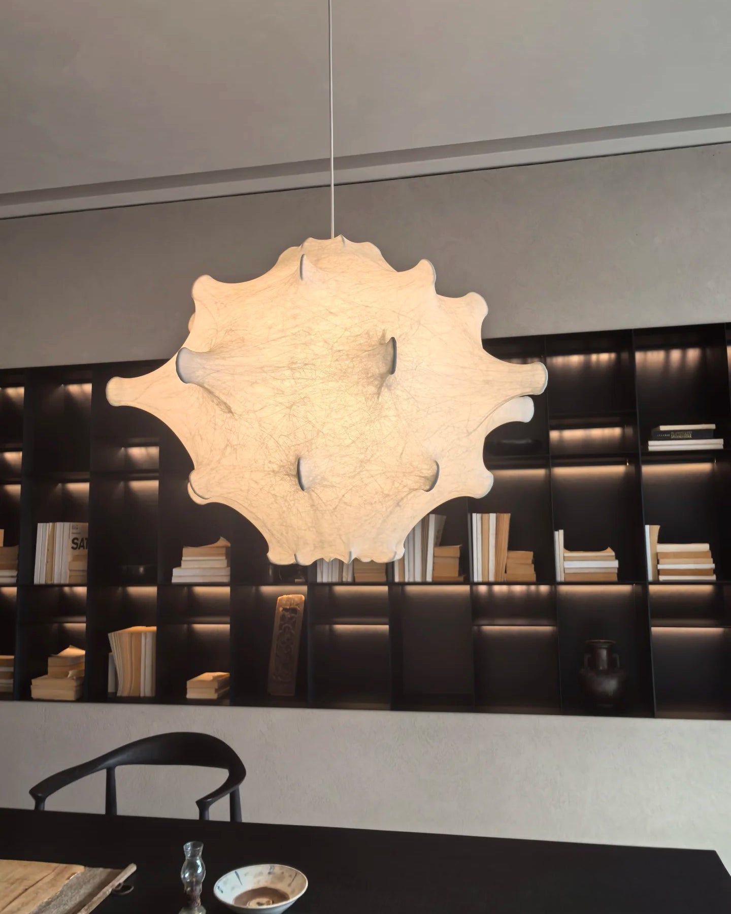 Brighten your space with the elegant WOMO Dandelion Silk Pendant Light. The Japandi-inspired design, made with luxurious silk, adds a touch of sophistication to any dining, kitchen, or living room. Create a warm and inviting ambiance with this stunning pendant light.