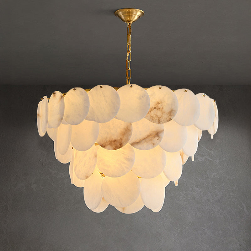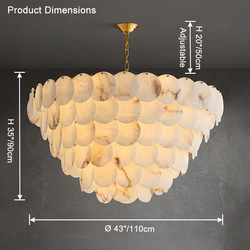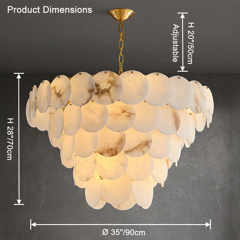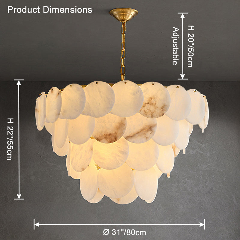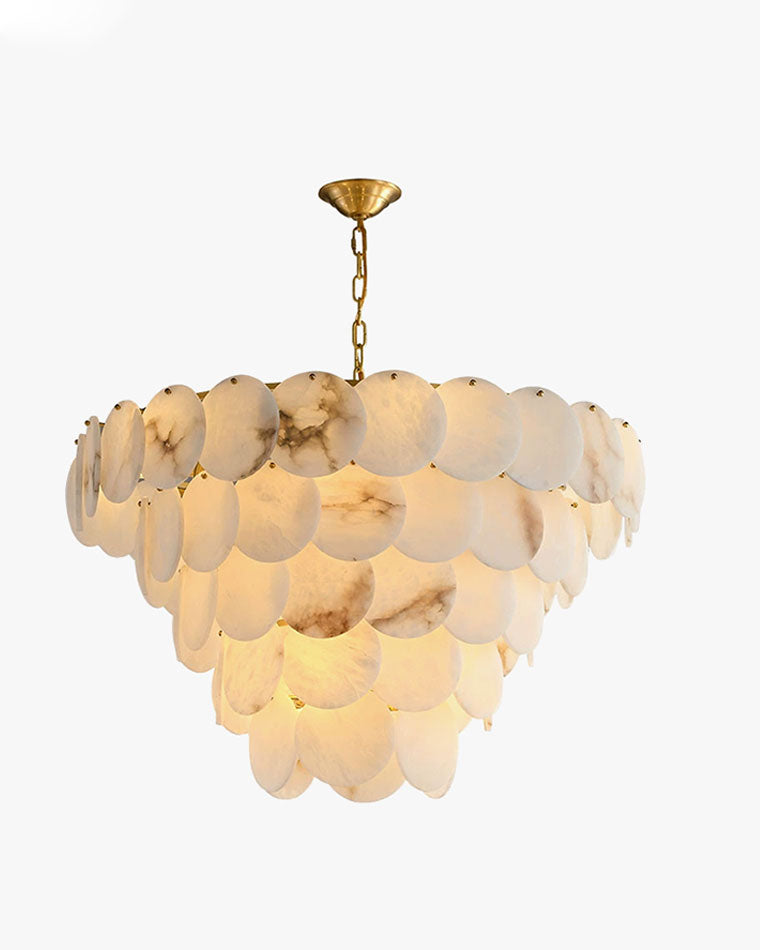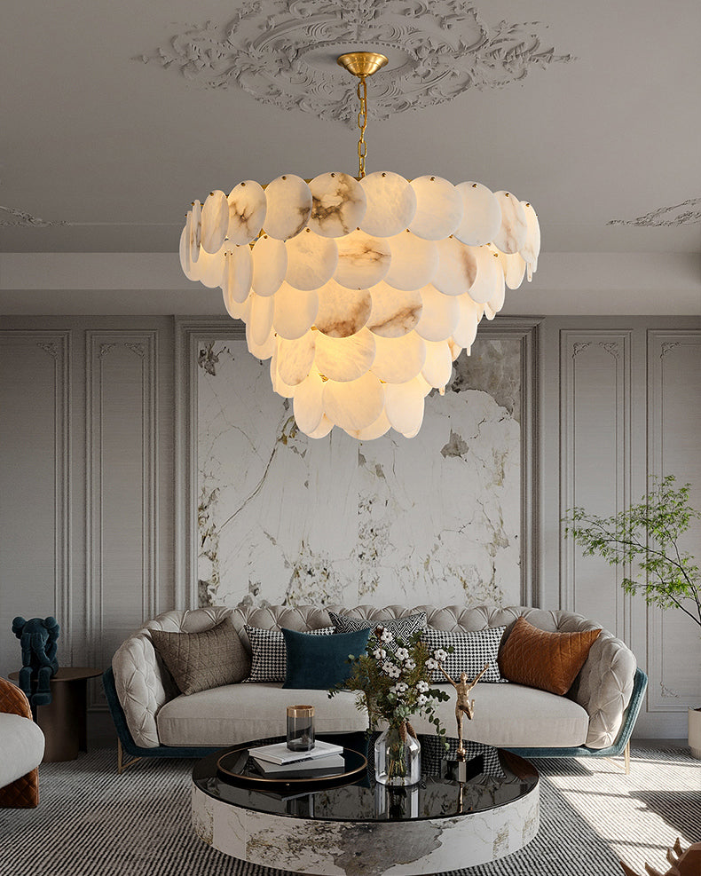 Instantly elevate your living and dining room with the WOMO Luxury Tiered Alabaster Chandelier-WM2849. Featuring a stunning tiered design in luxurious alabaster and gold, this piece will add a touch of glamor to any space. Create a stylish and sophisticated atmosphere where you can entertain with ease.