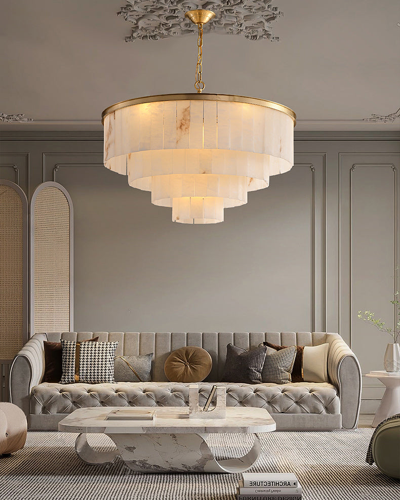 WOMO Tiered Round Alabaster Chandelier-WM2853