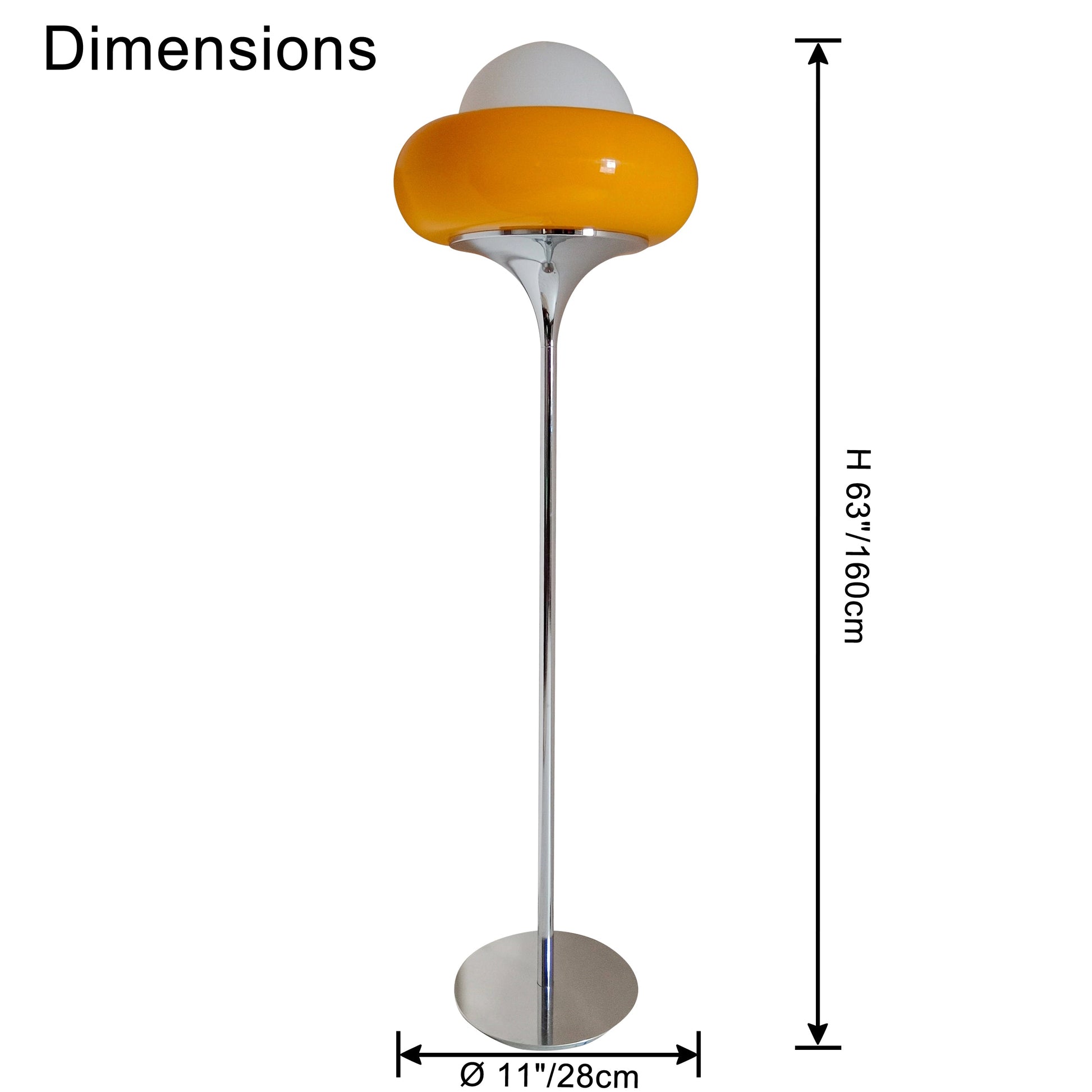 Create a bold statement in your living space with the WOMO Bauhaus Orange Floor Lamp! The chrome pole and base add a touch of sleek modernity, while the vibrant orange glass shade adds a pop of color. With its simple yet eye-catching design, this lamp is perfect for any room in your home.