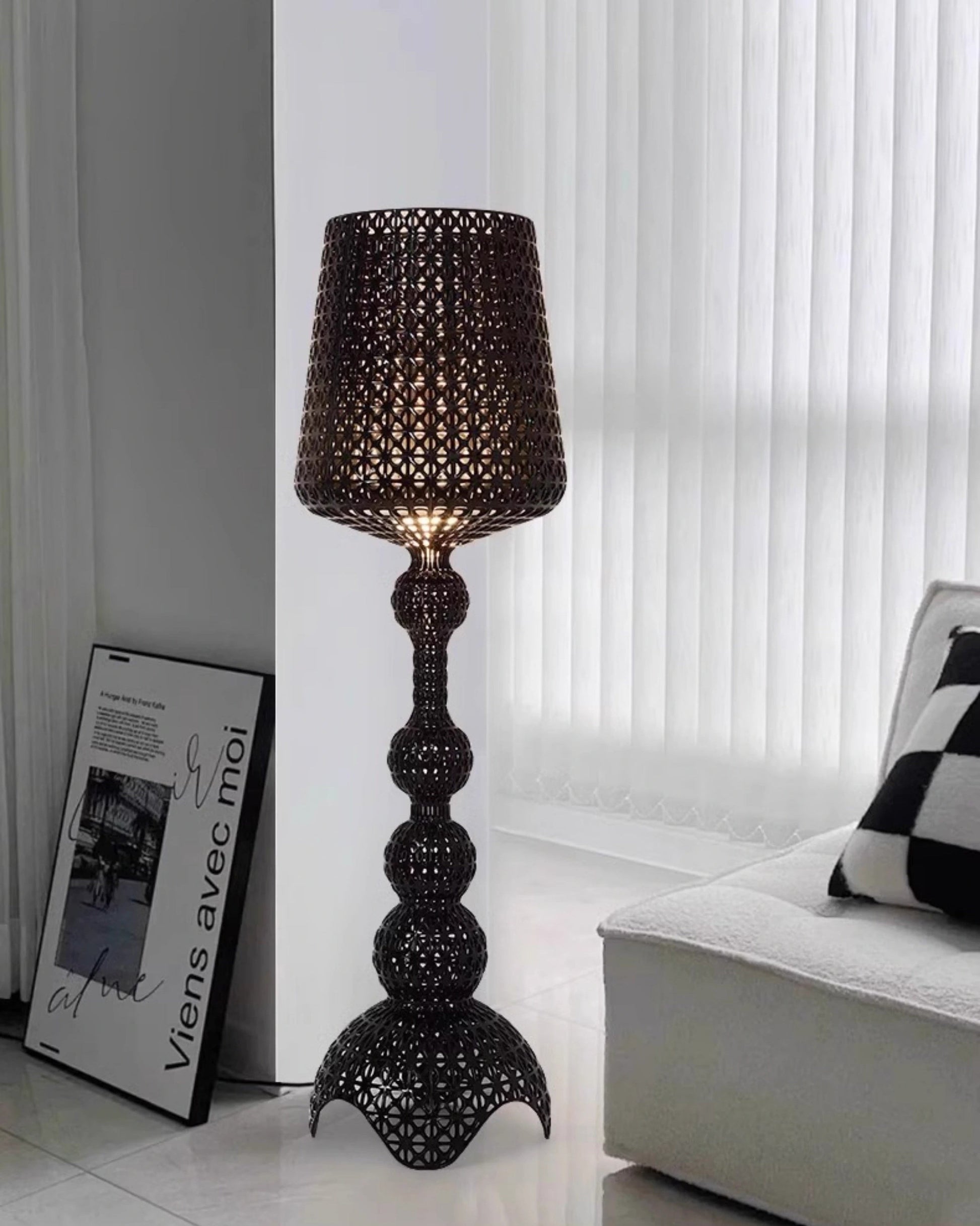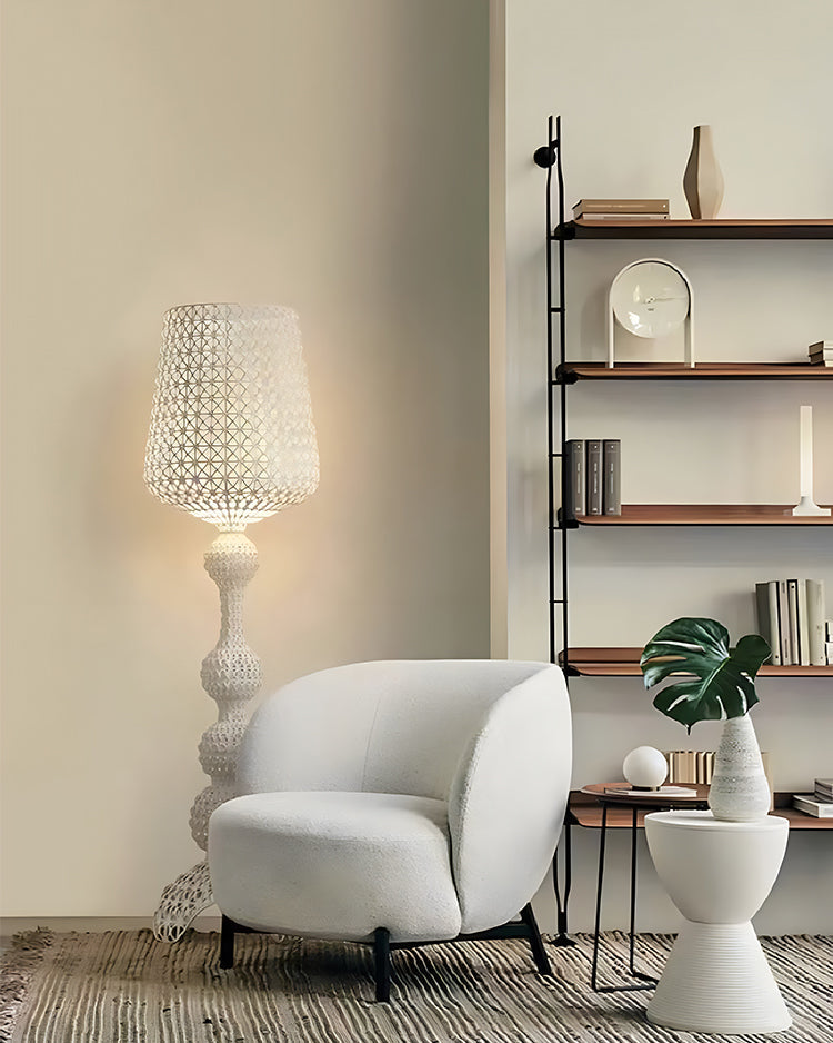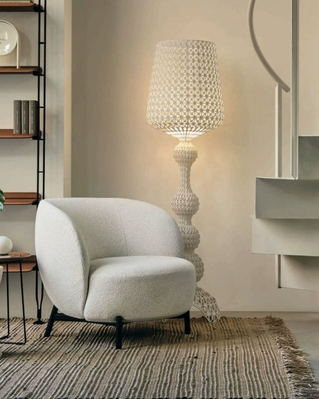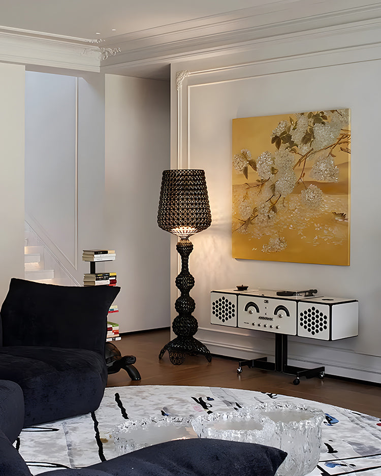 Illuminate your home with style and artistry with the WOMO Tower Floor Lamp. Perfect for the living room or bedroom, its linear design comes in sleek black, crisp white, clear, vibrant green, or soothing blue. Elevate your space with this versatile and stunning addition.