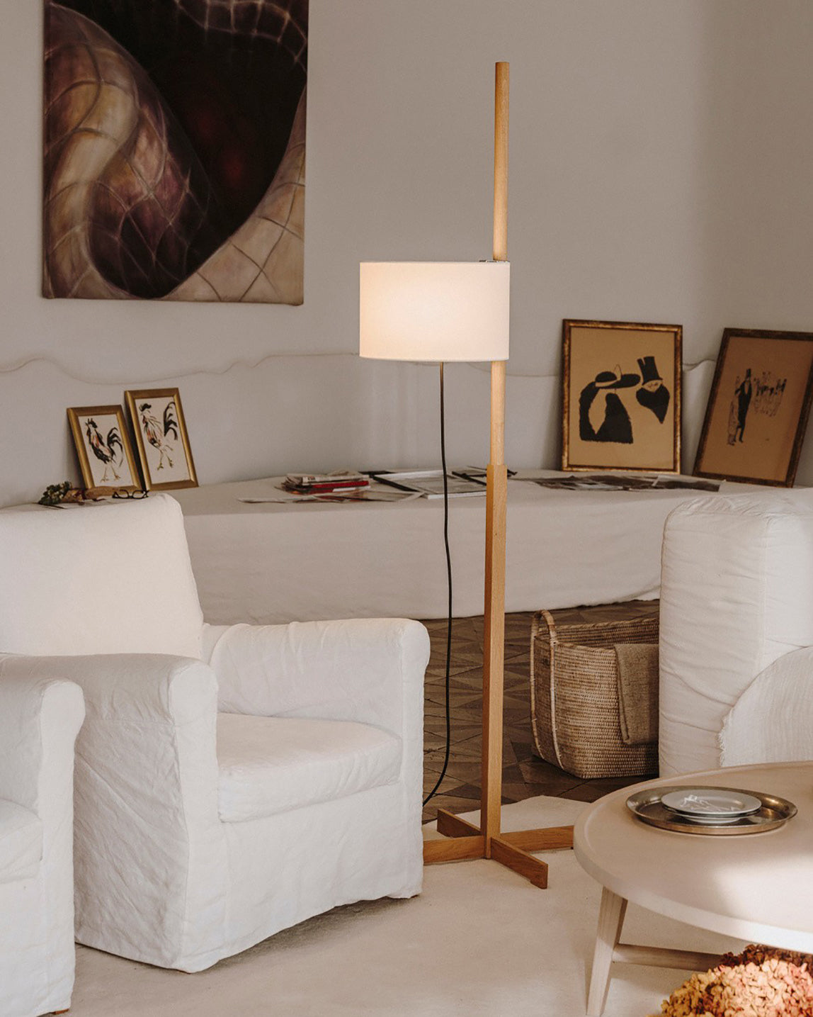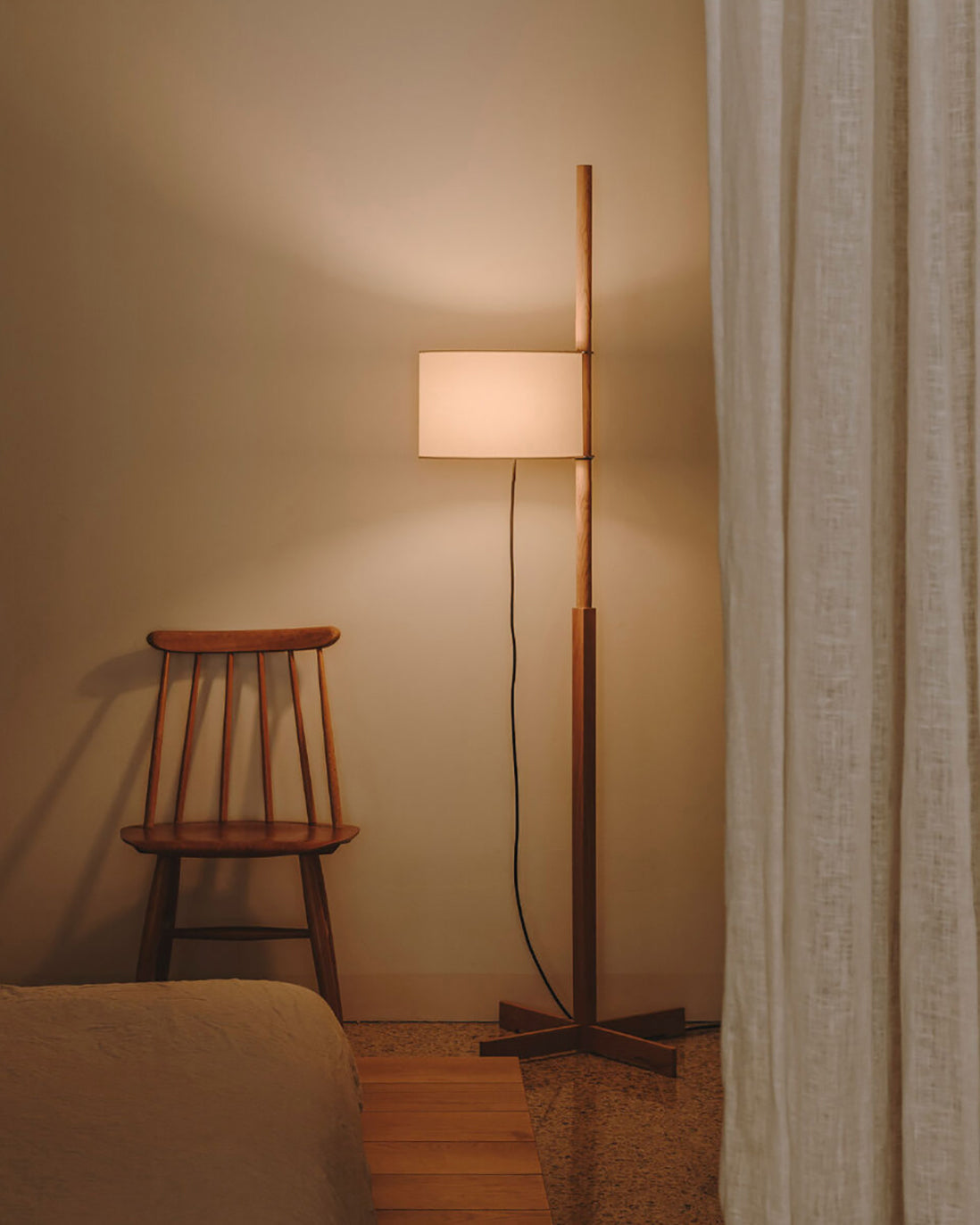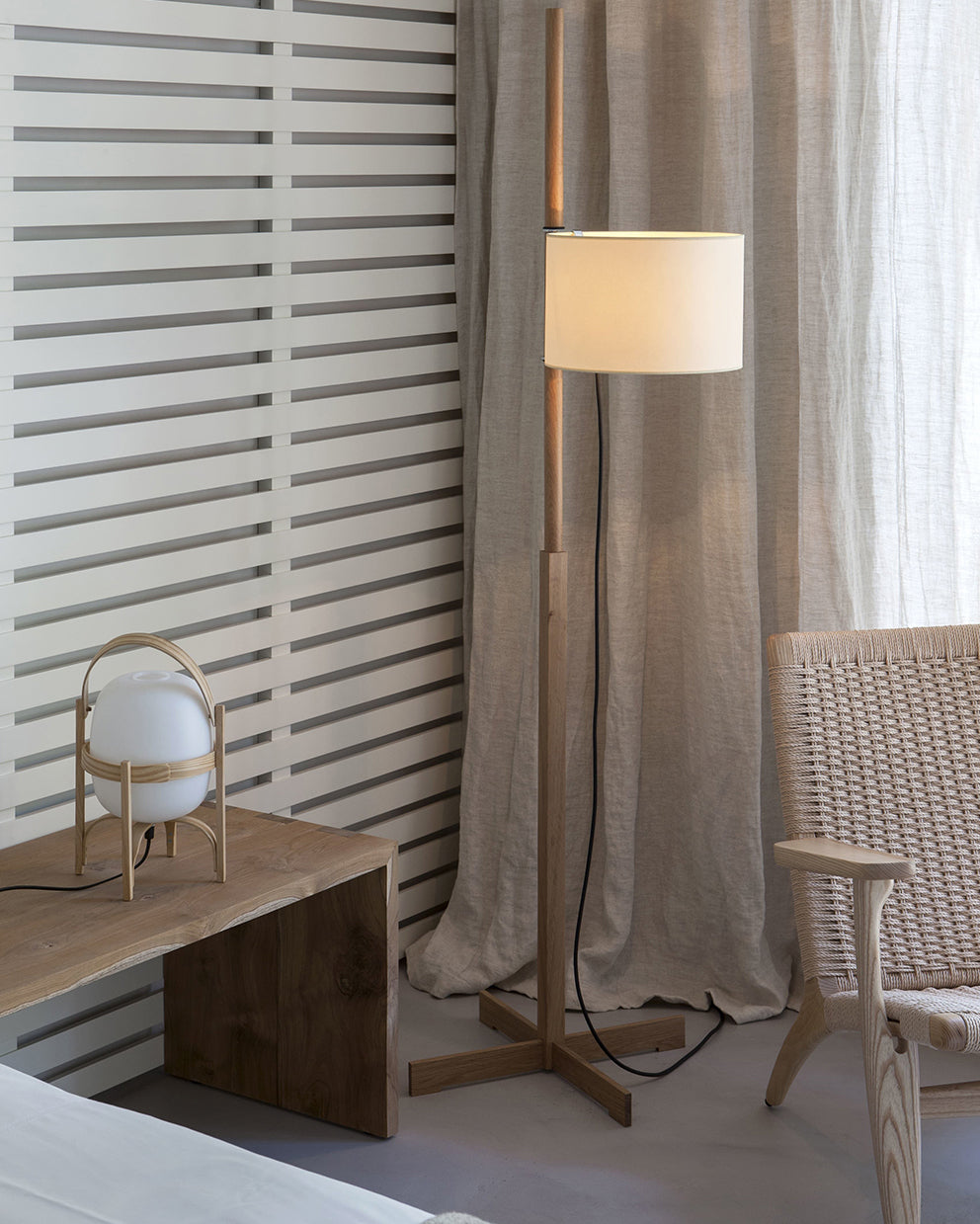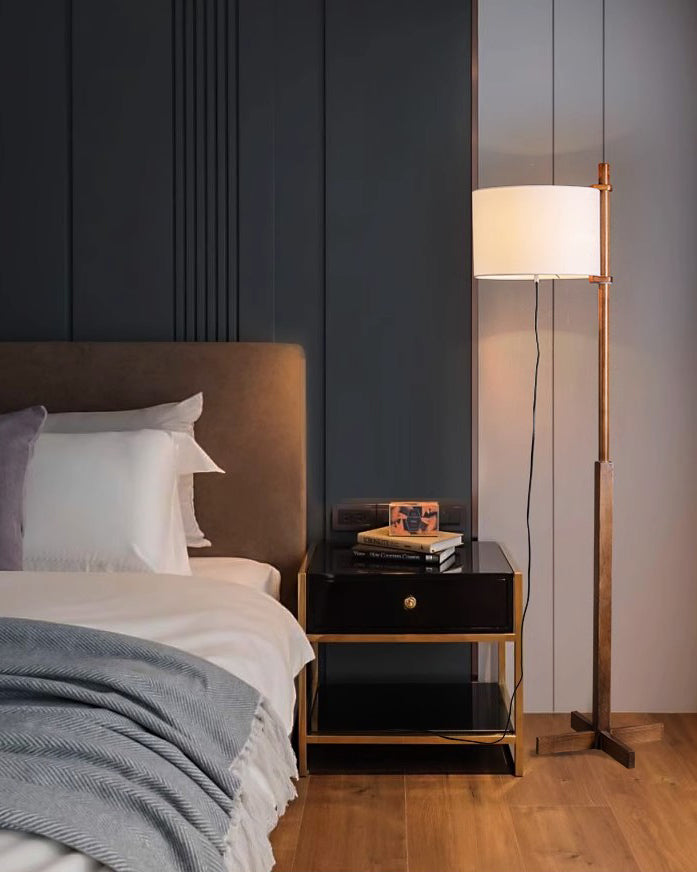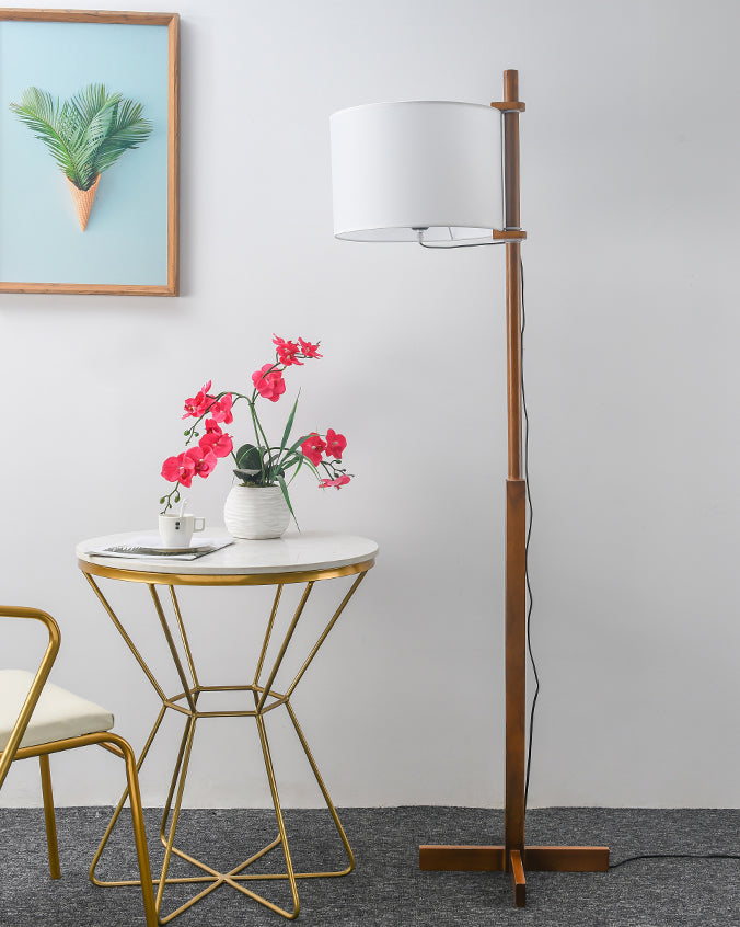 WOMO Wood Fabric Shaded Floor Lamp-WM7101