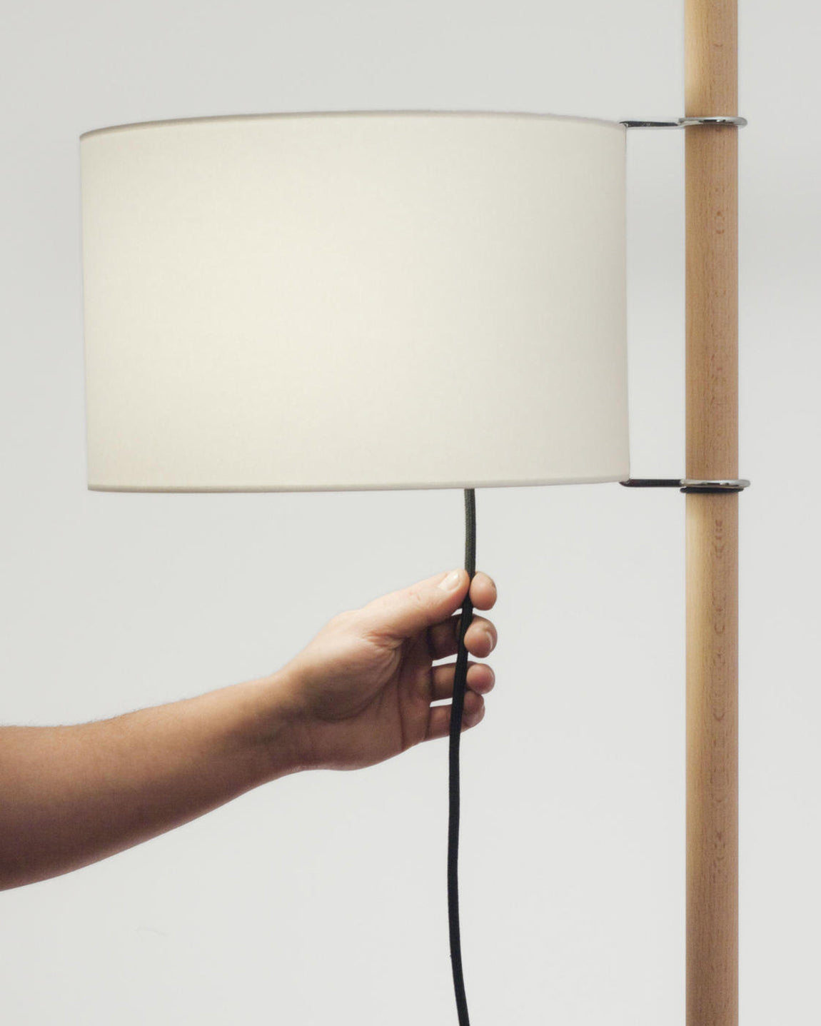 Introducing the perfect addition to your living room or bedroom - the WOMO Wood Fabric Shaded Floor Lamp! This contemporary lamp features a beautiful walnut wood base and a fabric shade, adding warmth and style to any space. Bring a touch of elegance and functionality to your home with this must-have piece.