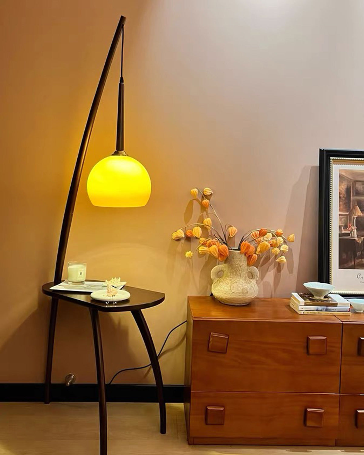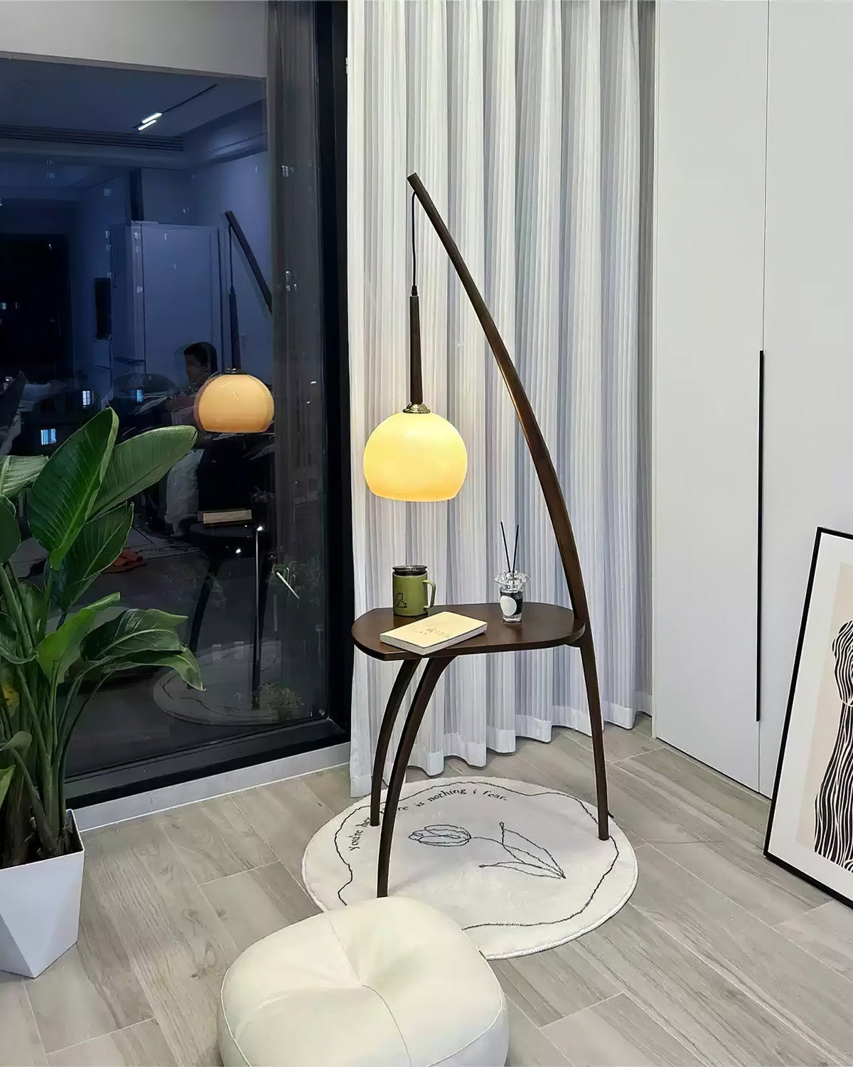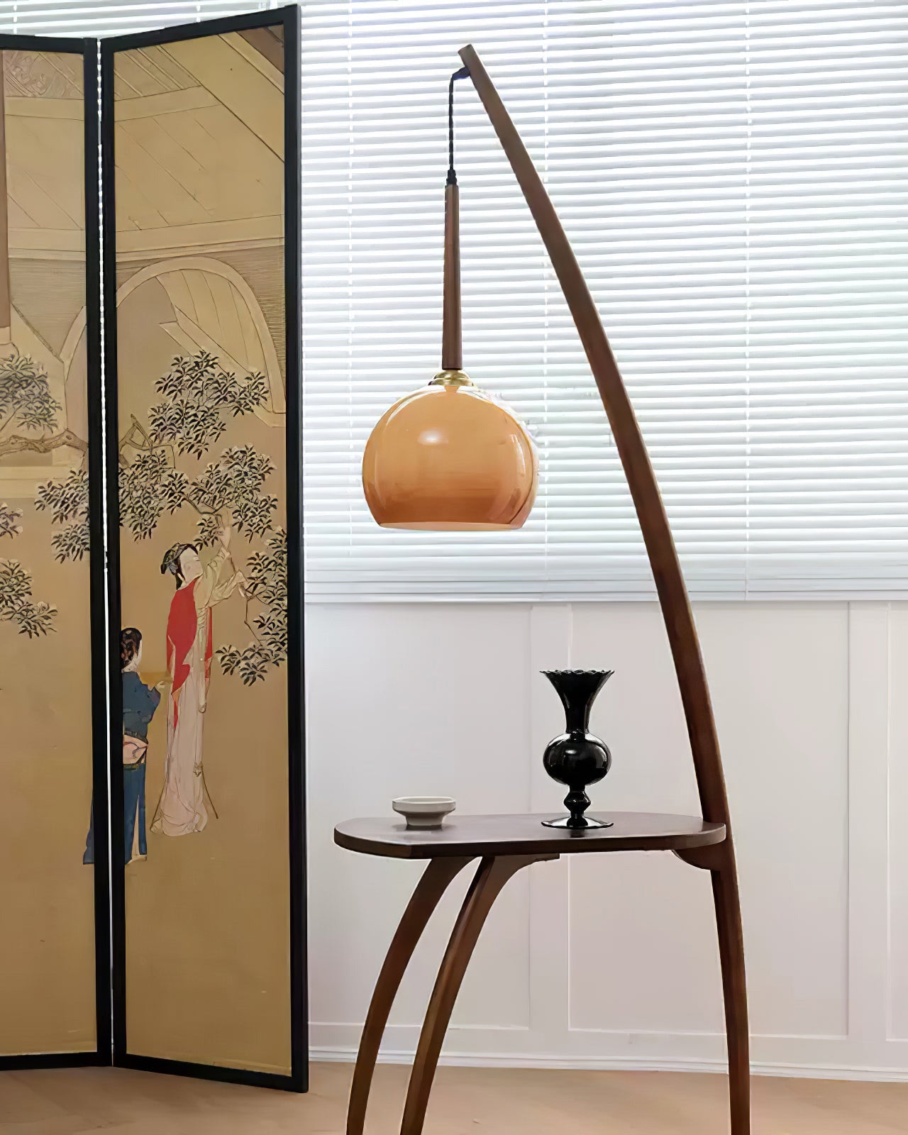WOMO Hanging Wood Floor Lamp with Table-WM7130
