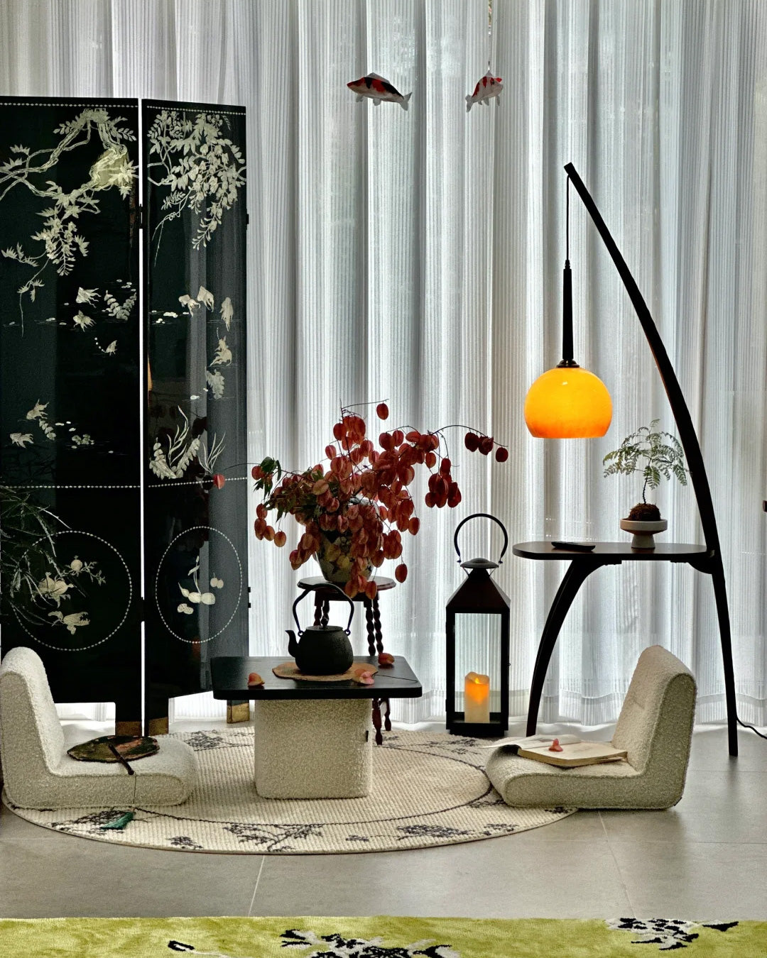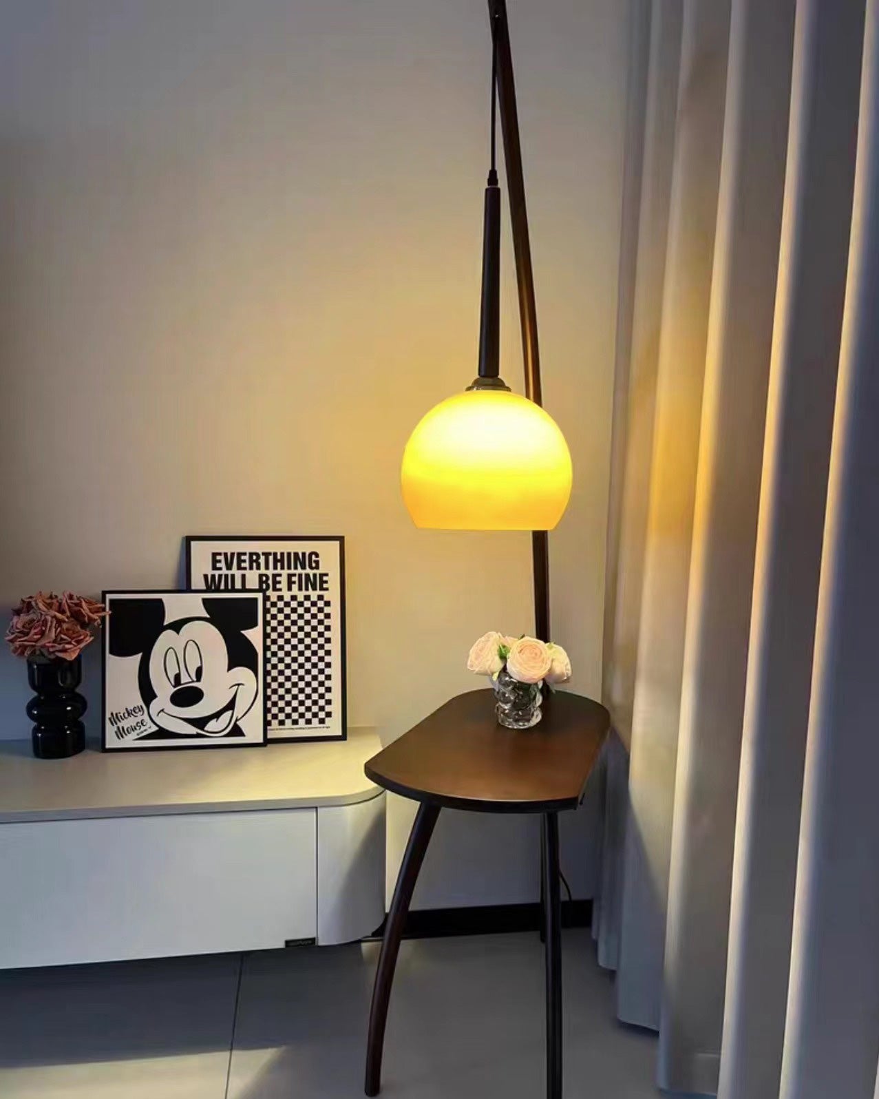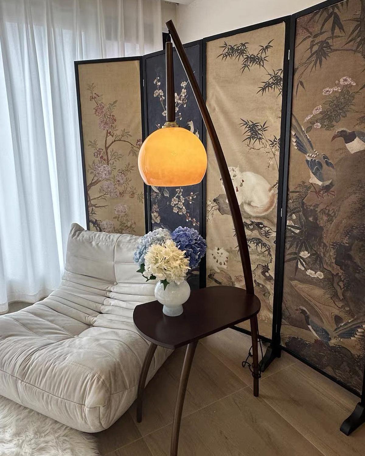 WOMO Hanging Wood Floor Lamp with Table-WM7130