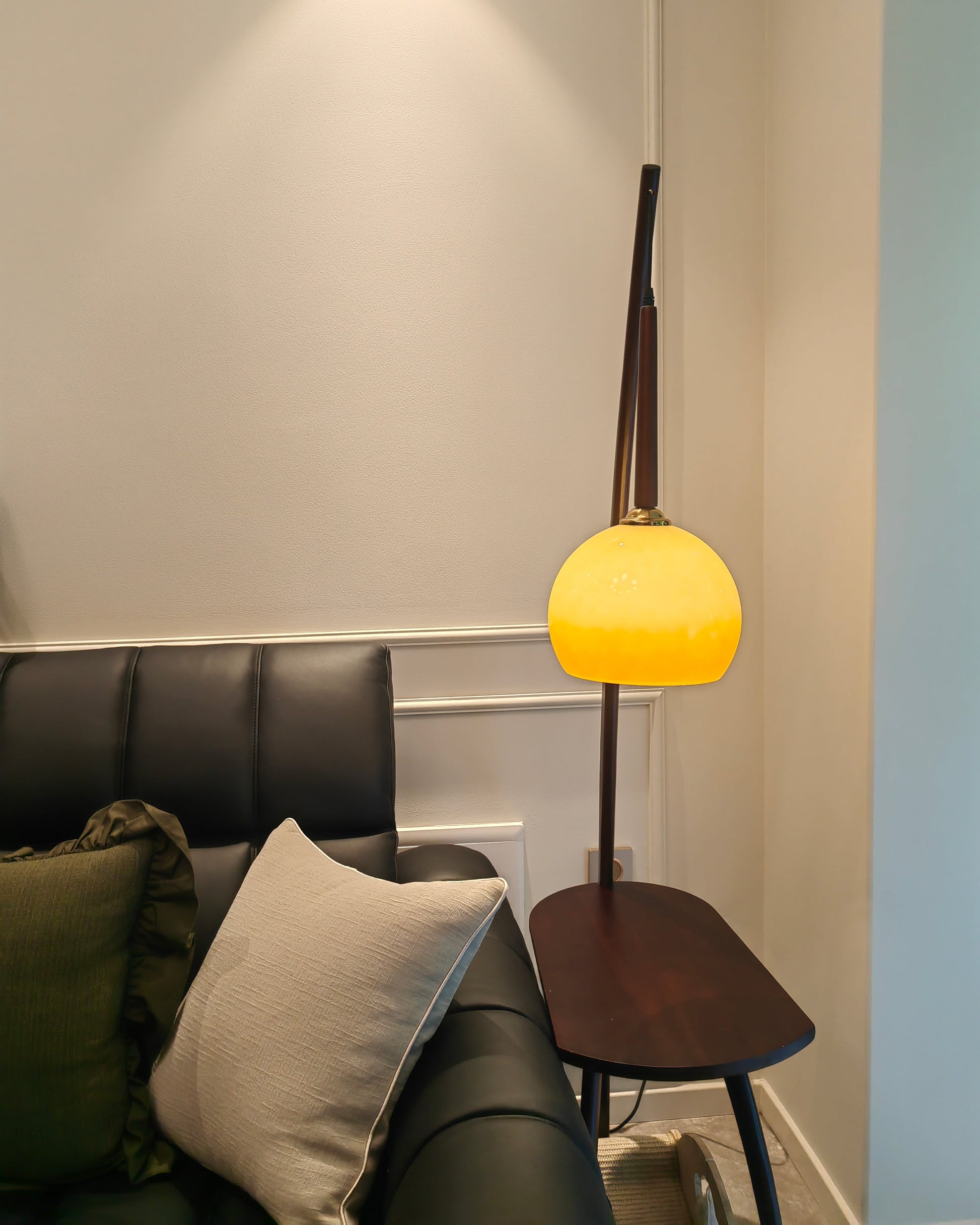 Bring a touch of mid century modern design to your living room or bedroom with our WOMO Table Arc Floor Lamp! Crafted with a beautiful wood and glass dome, available in oak or walnut finishes.