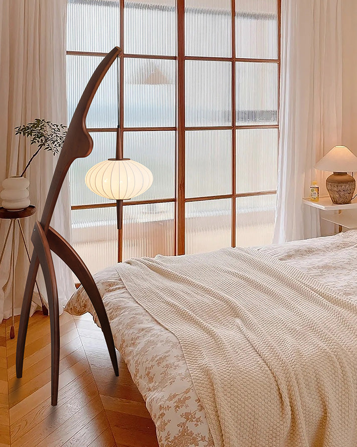 WOMO Flying Saucer Tripod Wood Floor Lamp-WM7136